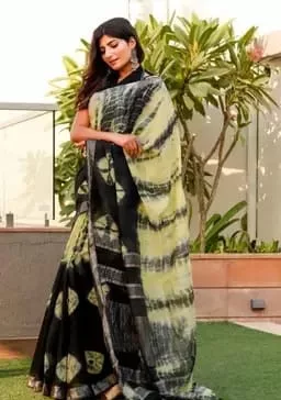 • Stunning Shibori print & Tie Dye Pallu & Zari border gives you elegant look in your beauty