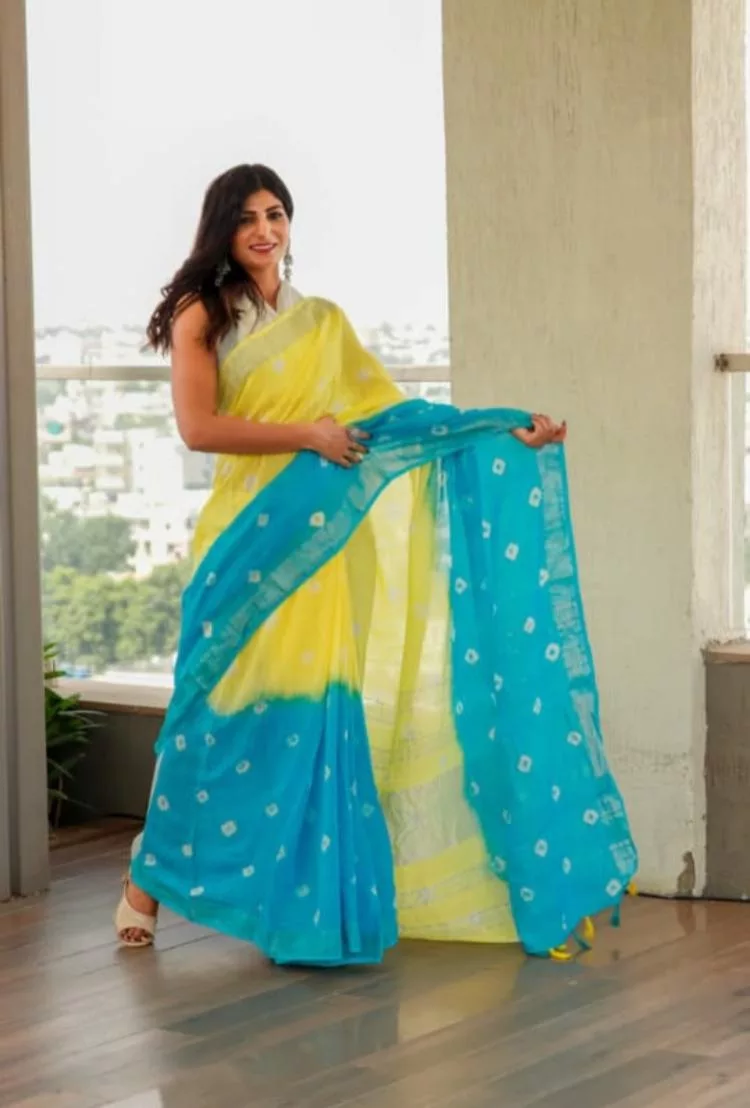 Bhagalpuri Cotton Slub Shibori Saree With Running Blouse