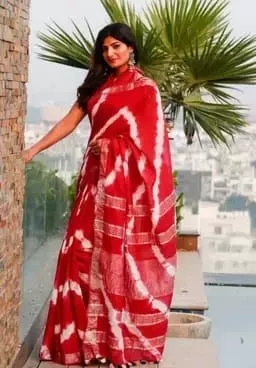 • Stunning Shibori print & Tie Dye Pallu & Zari border gives you elegant look in your beauty