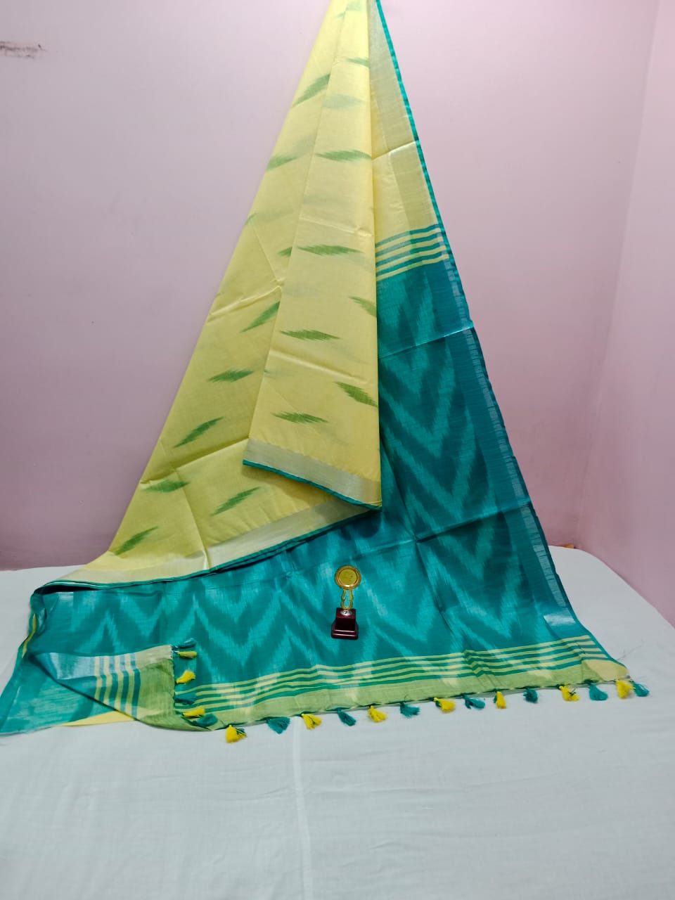 Traditional Handloom Pure Cotton Ikkat Saree for Women With Zari Border