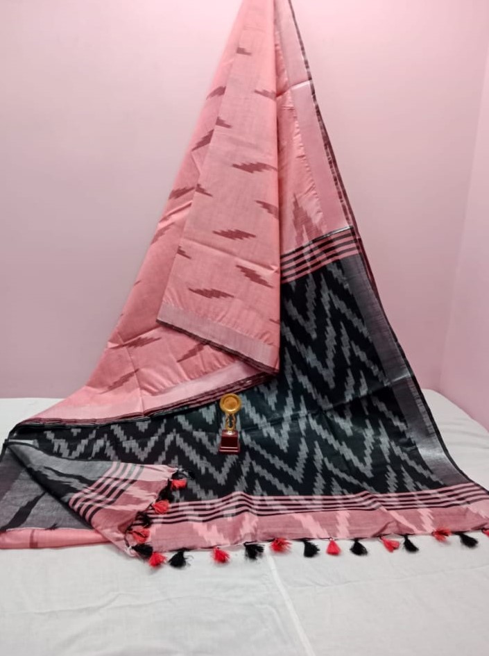 Traditional Handloom Pure Cotton Ikkat Saree for Women With Zari Border