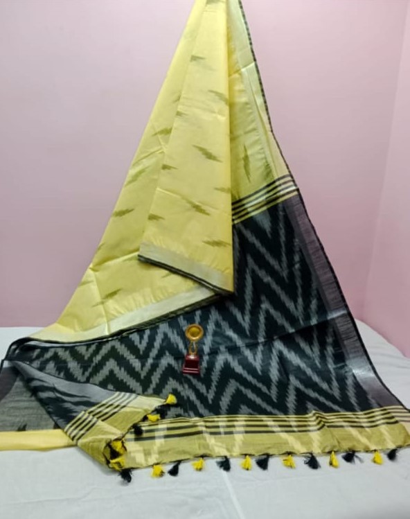 Traditional Handloom Pure Cotton Ikkat Saree for Women With Zari Border