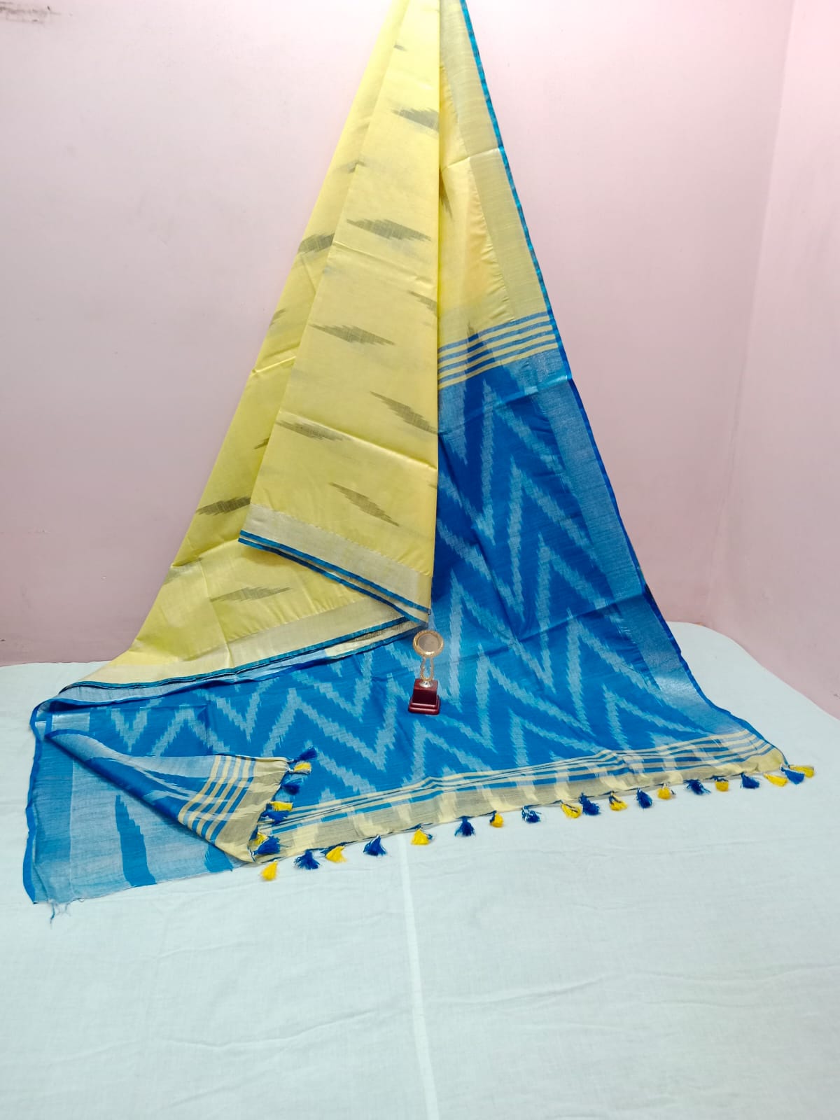 - Features an intricate Ikkat print.