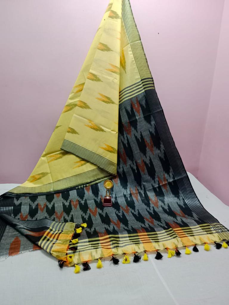 Traditional Handloom Pure Cotton Ikkat Saree for Women With Zari Border