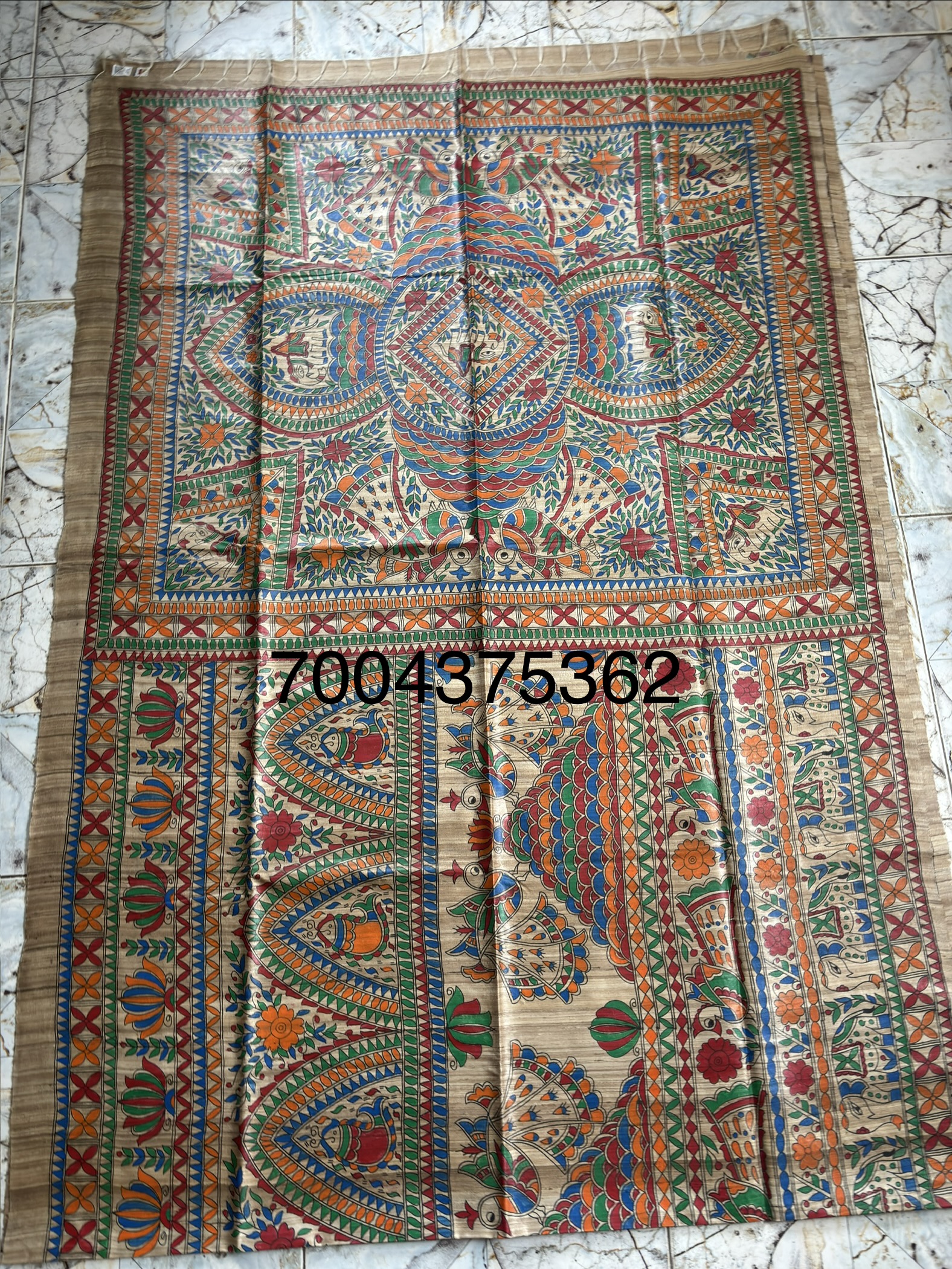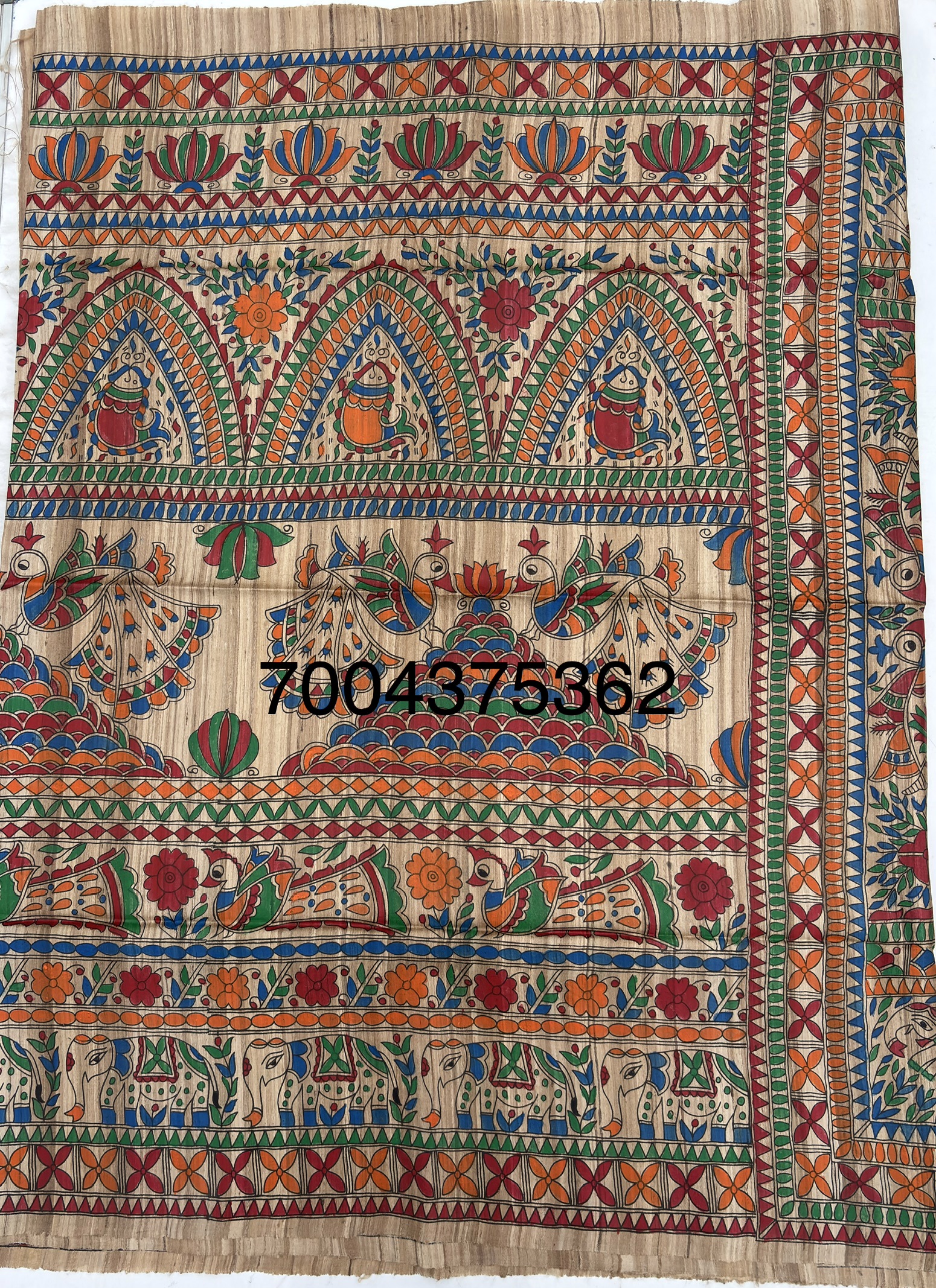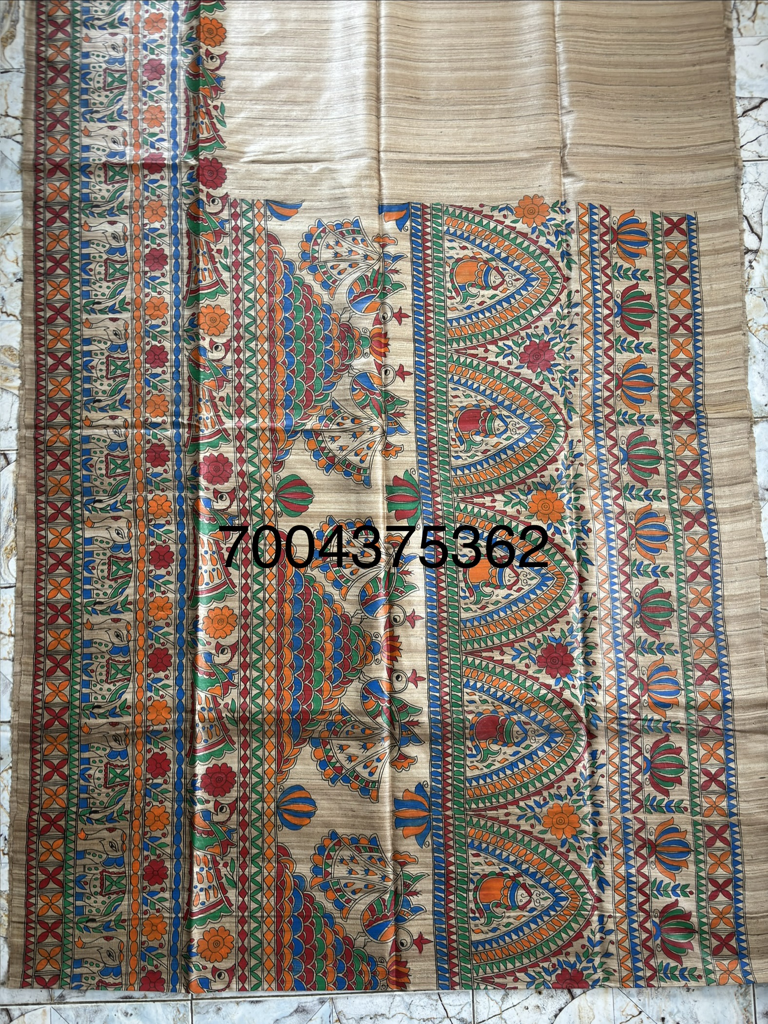 Full Madhubani Painted Ghicha Tussar Silk Saree