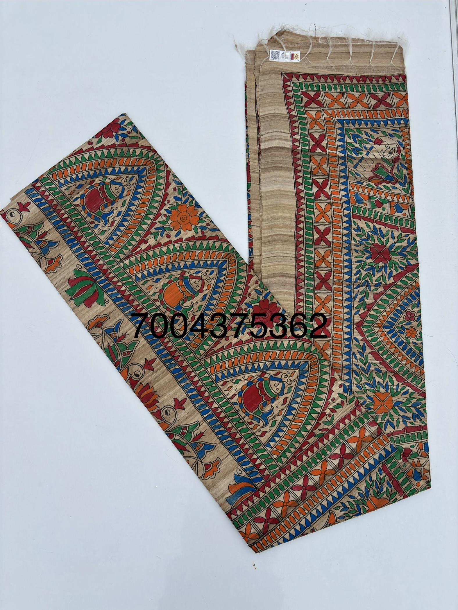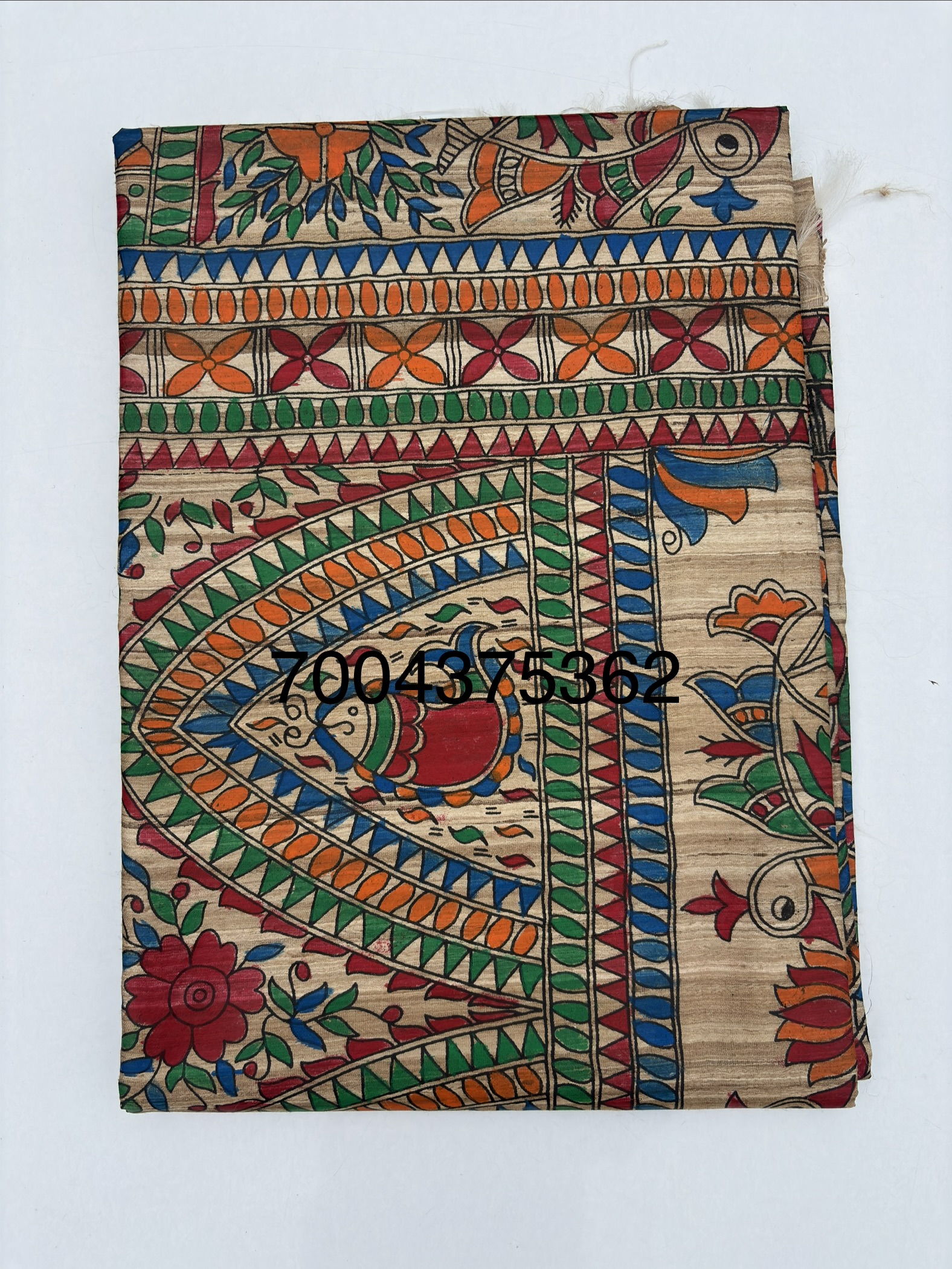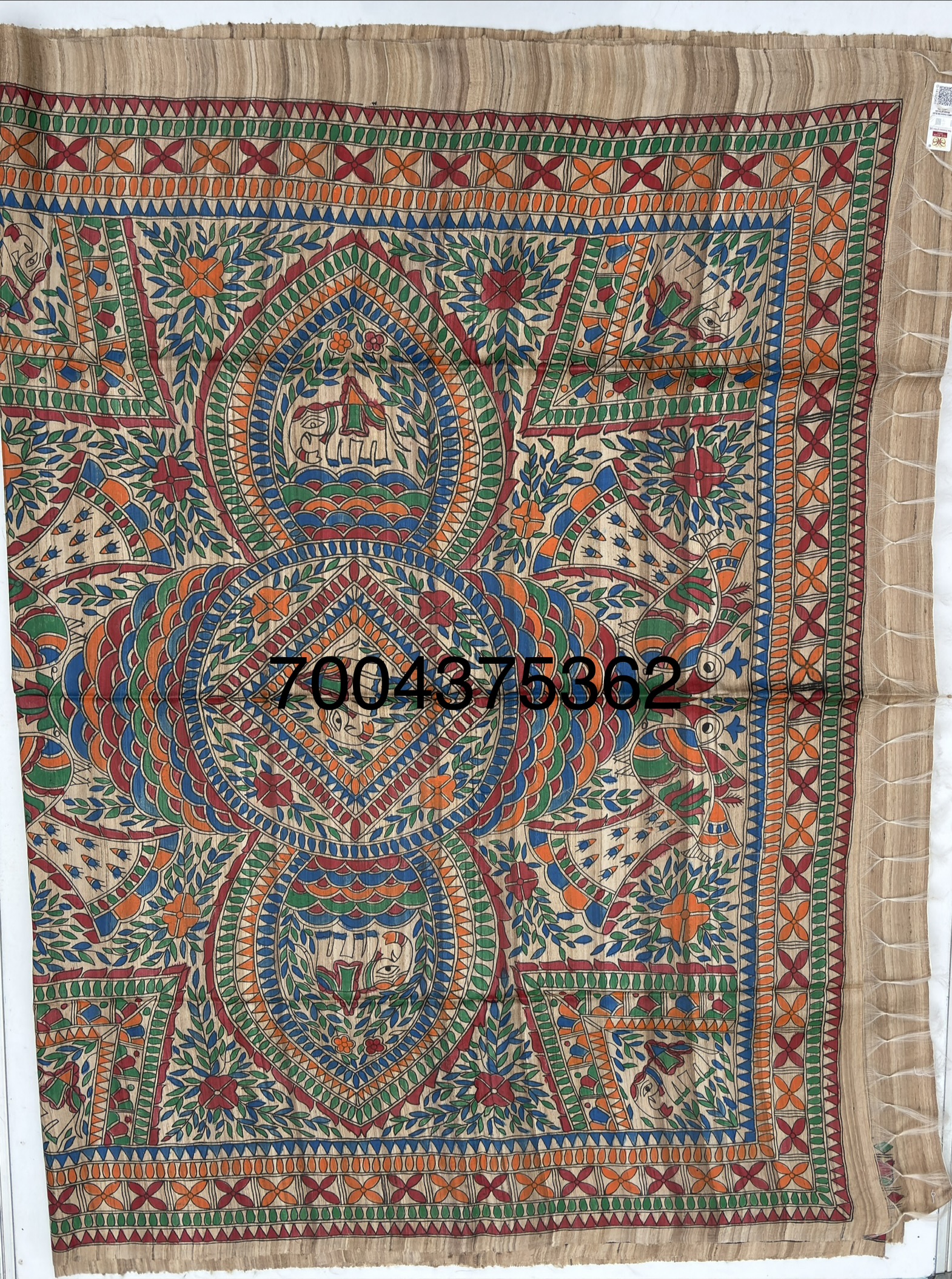 Full Madhubani Painted Ghicha Tussar Silk Saree