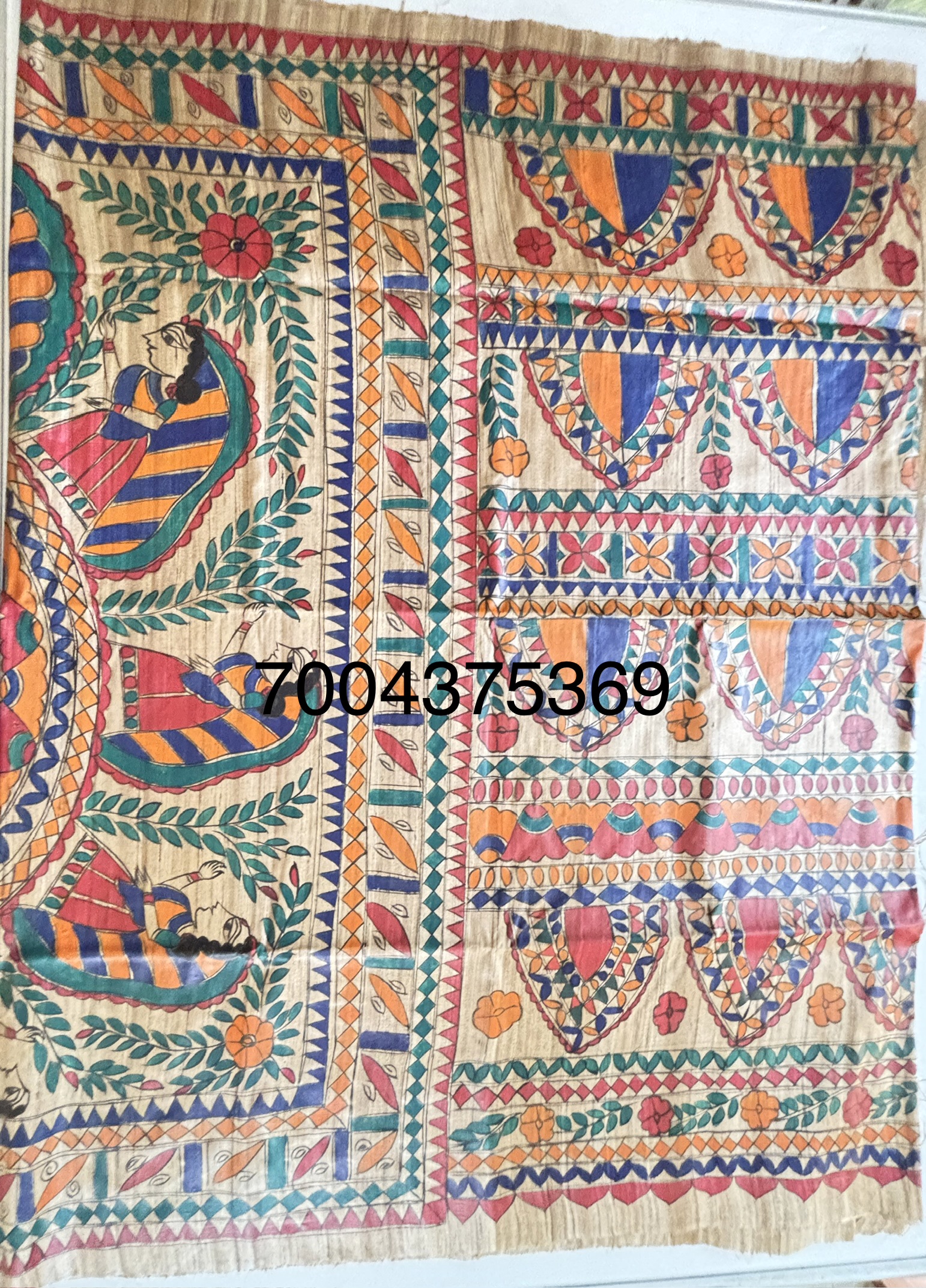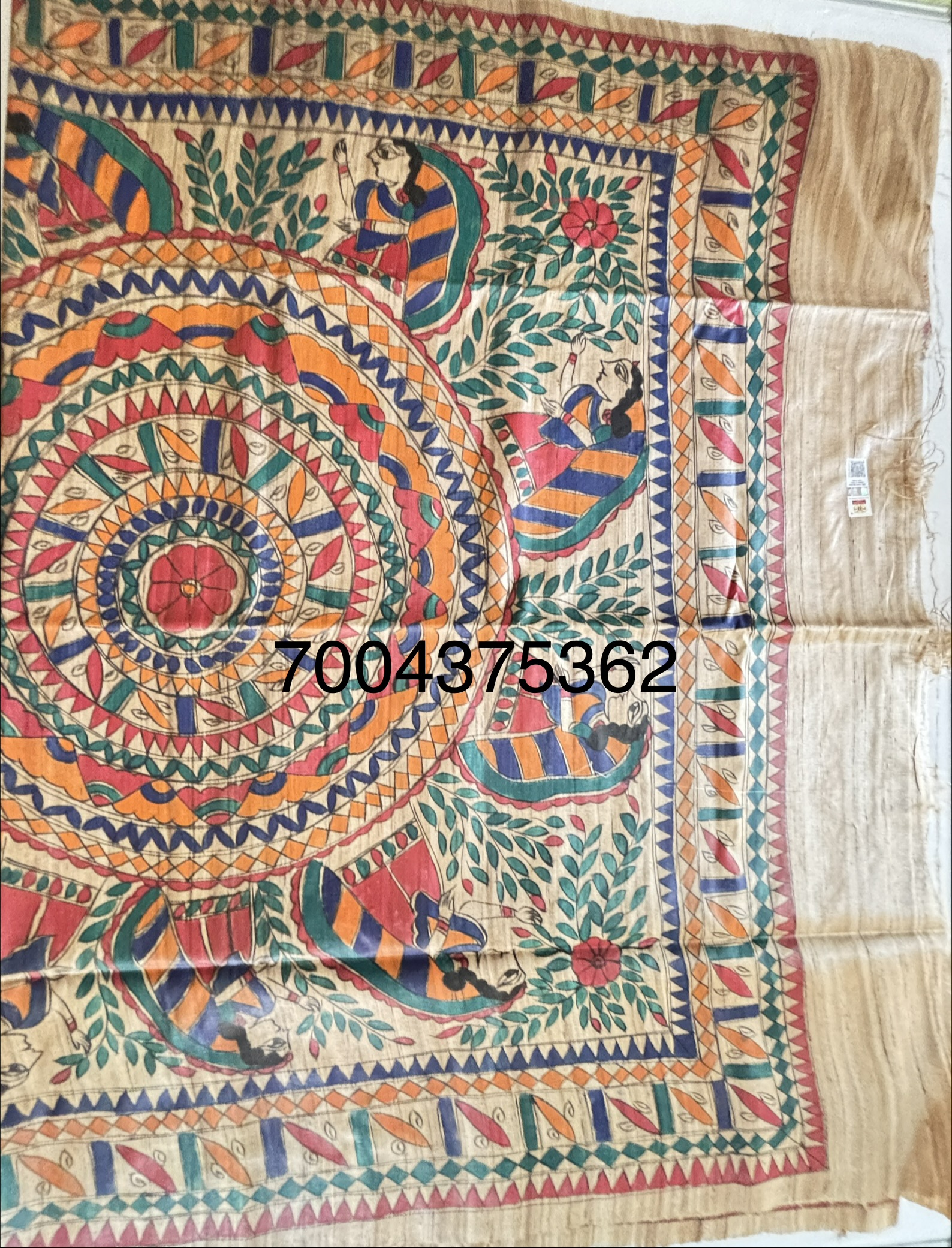 Full Madhubani Painted Ghicha Tussar Silk Saree