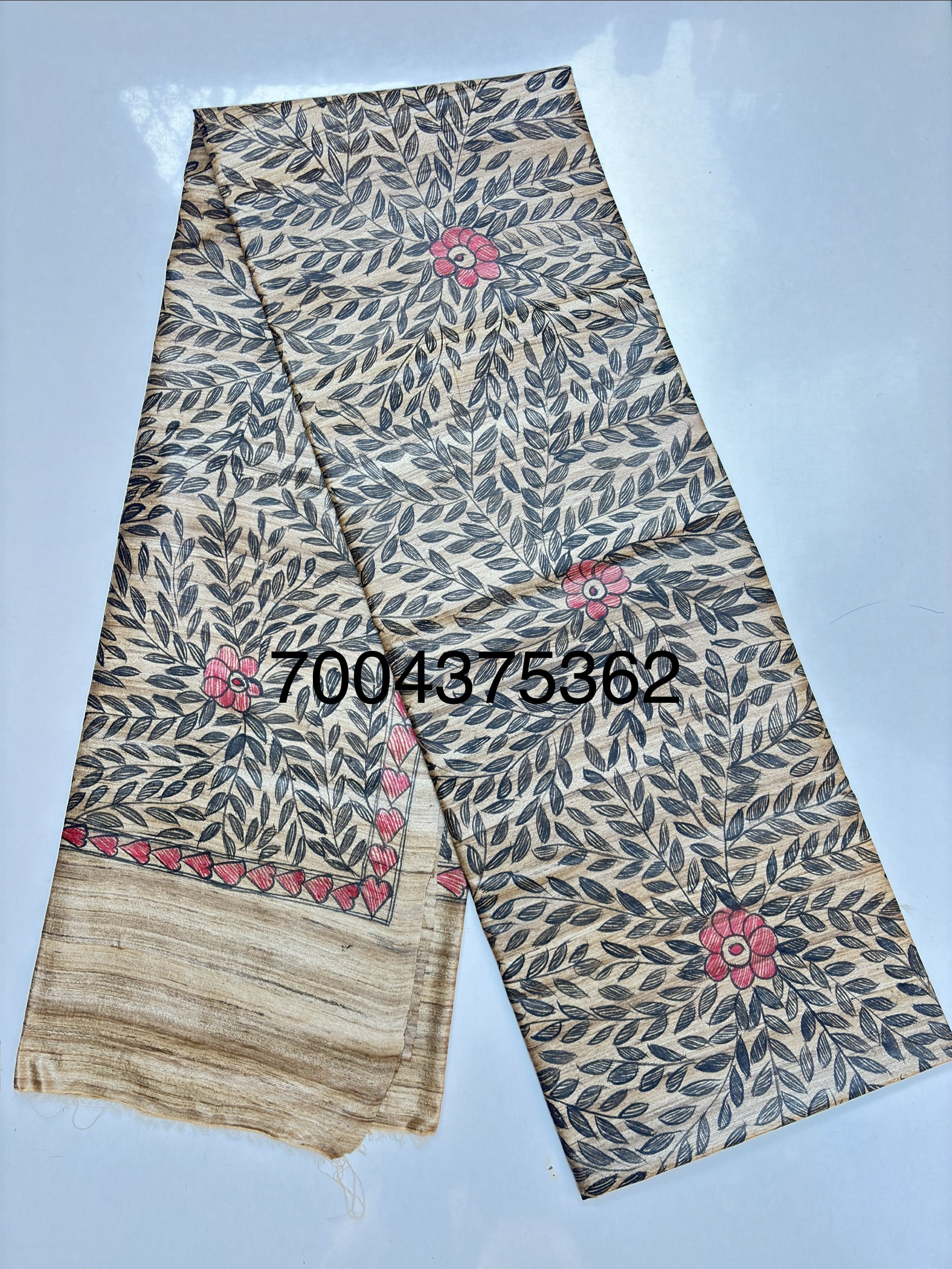 Full Madhubani Painted Ghicha Tussar Silk Saree