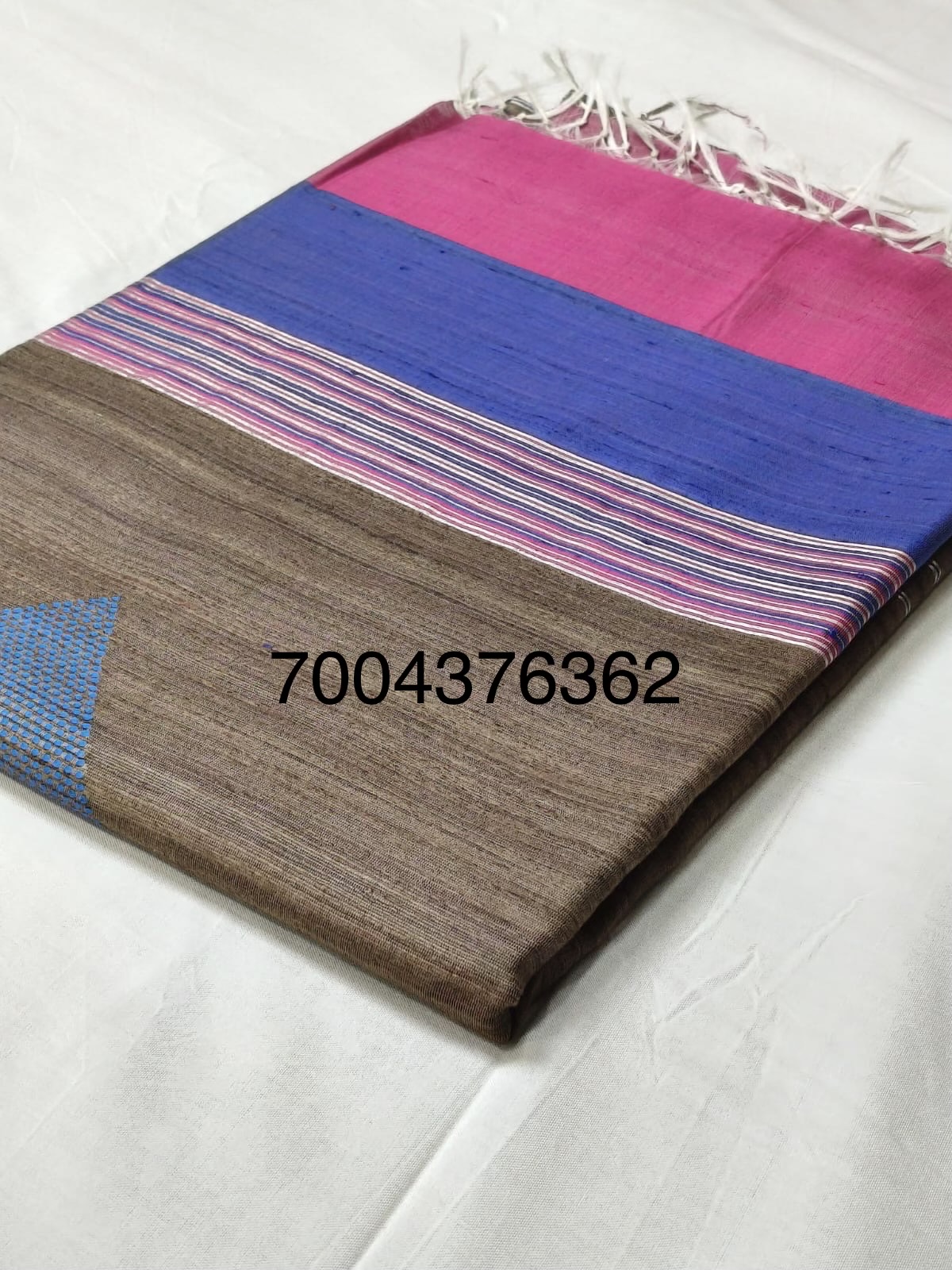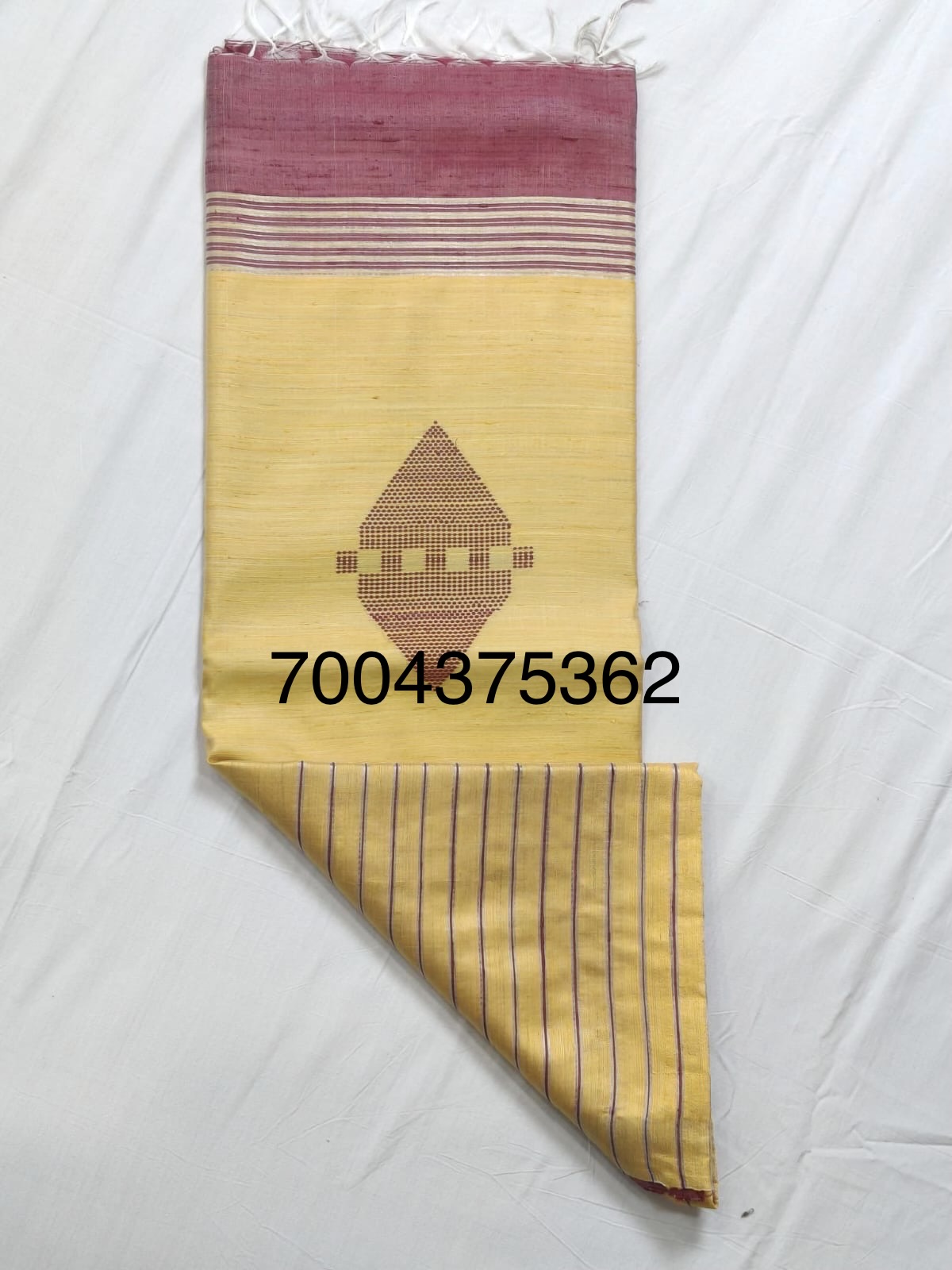 This saree is specially hand woven with raw silk fibre which gives lustrous look and shimmer to the cloth. Presenting you beautifully woven Dupion silk.