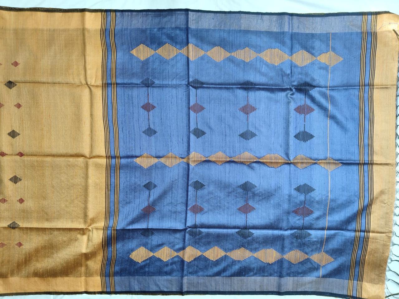 This saree is specially hand woven with raw silk fibre which gives lustrous look and shimmer to the cloth. Presenting you beautifully woven Dupion silk.