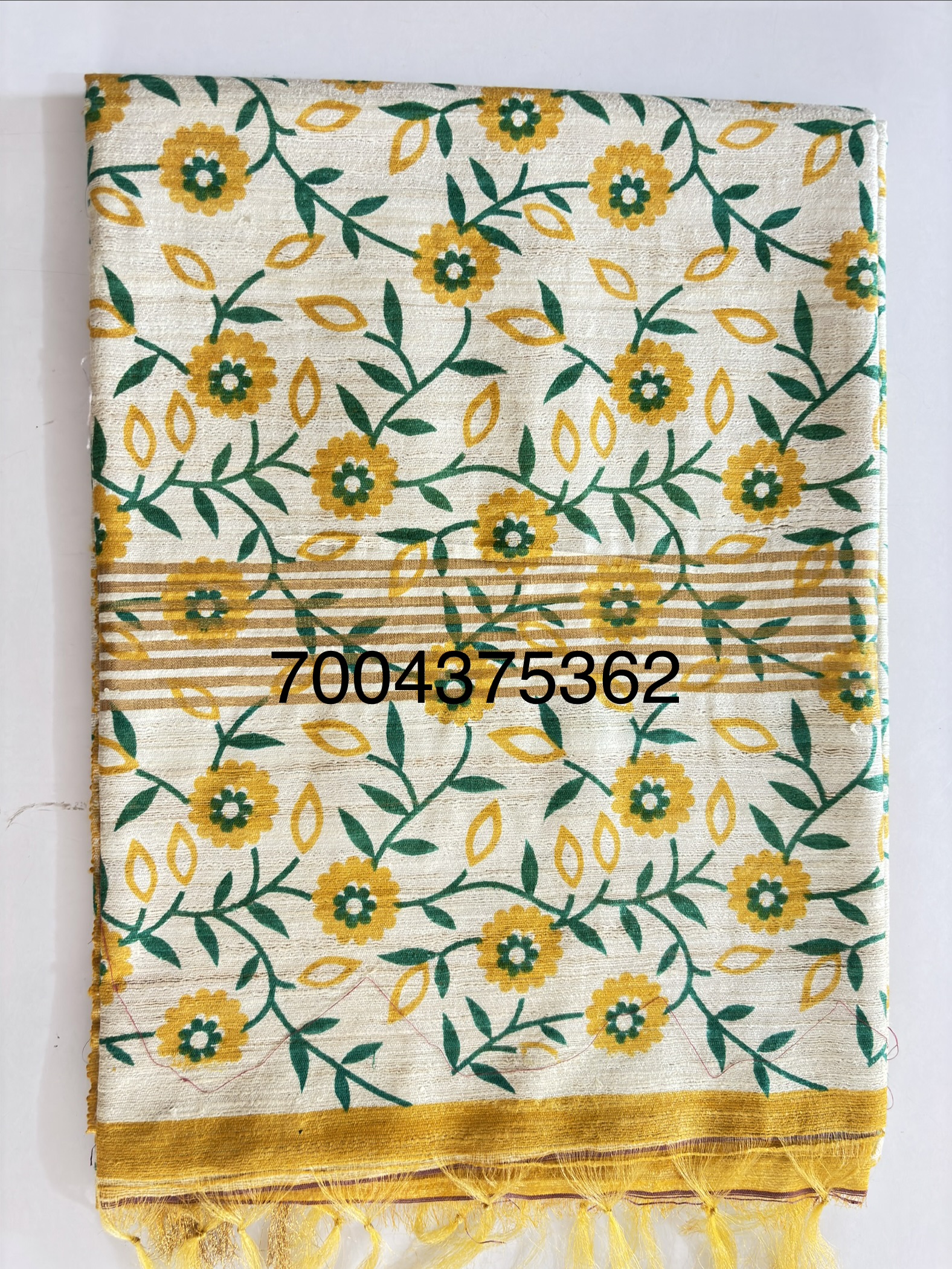 Handwoven Block Printed Pure Ghicha Tussar Silk Saree