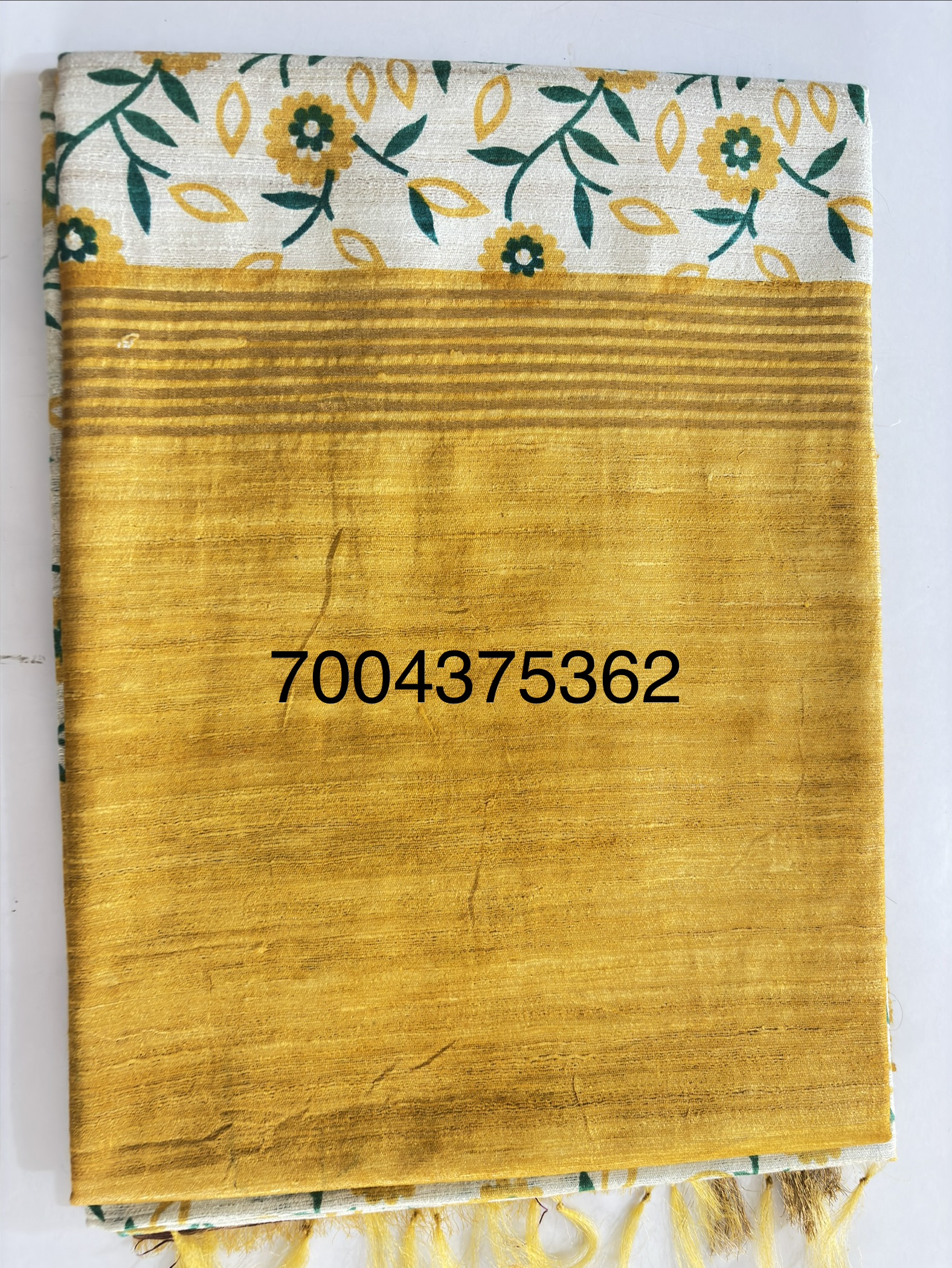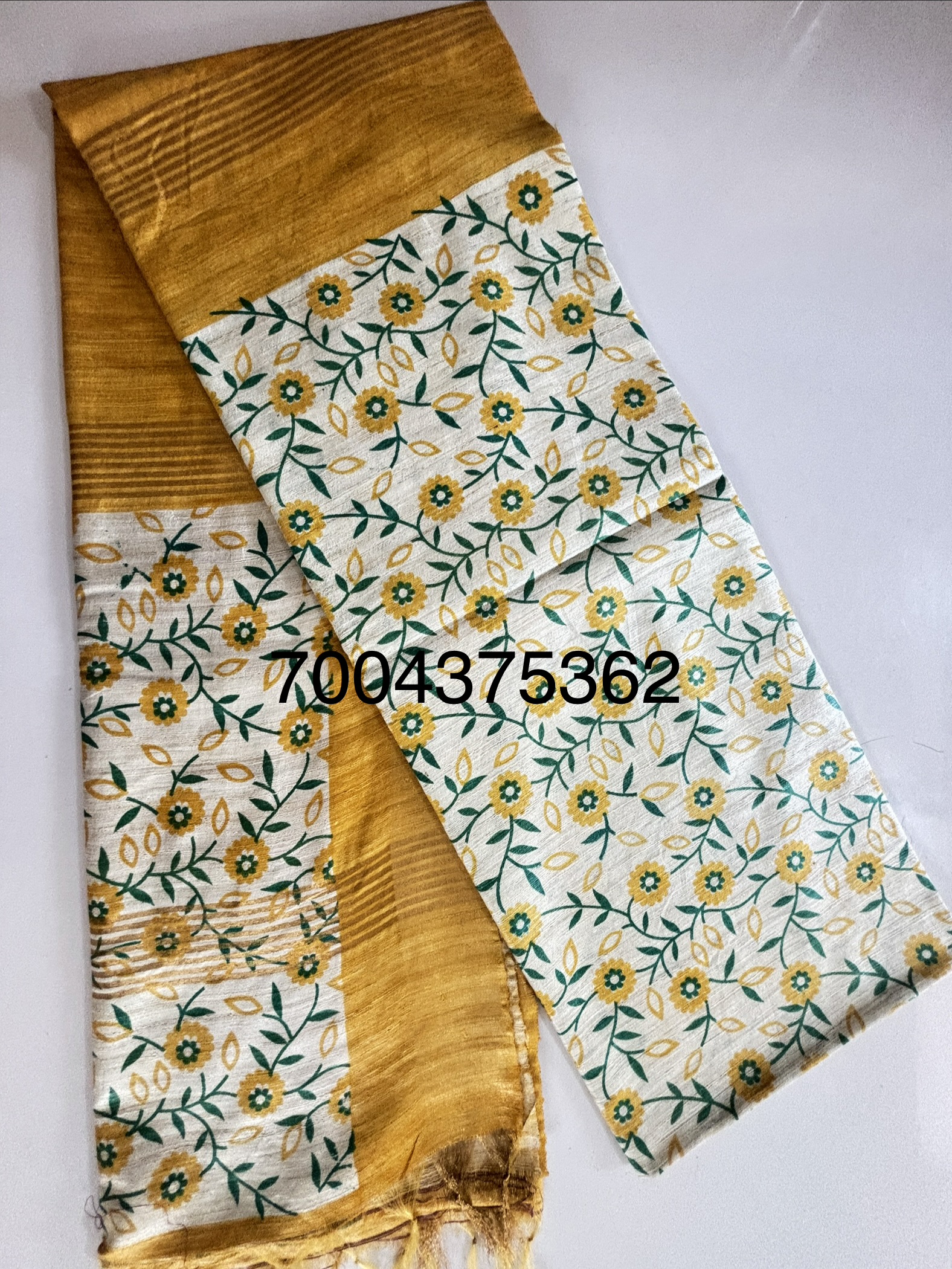 Handwoven Block Printed Pure Gicha Tussar Silk Saree