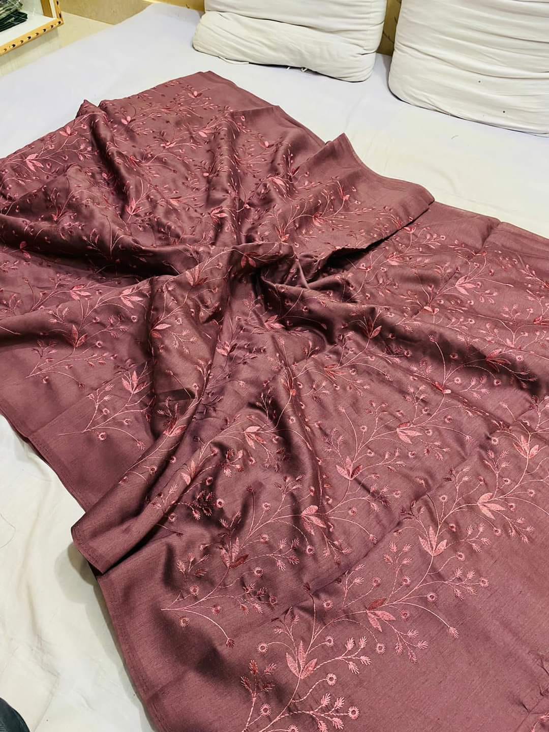 Katan Staple Embroidery Saree With Blouse
