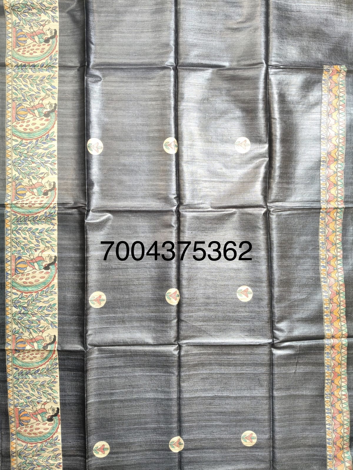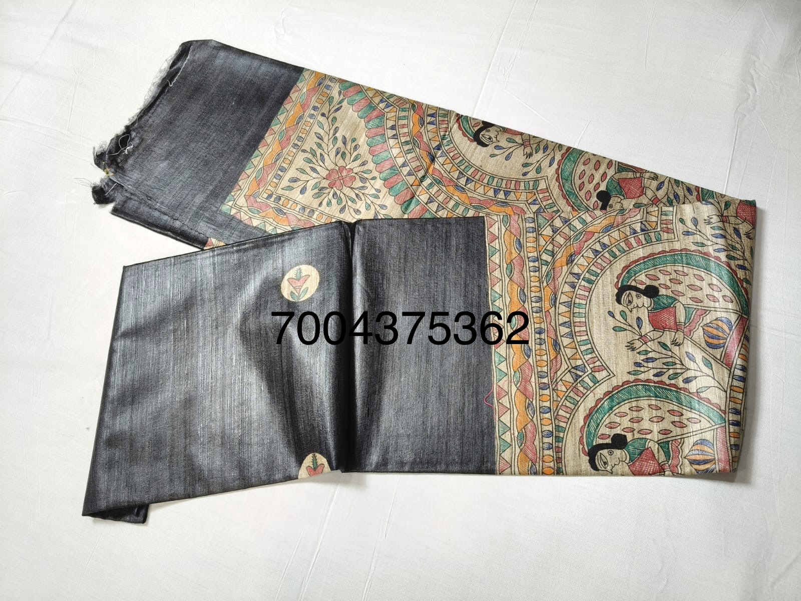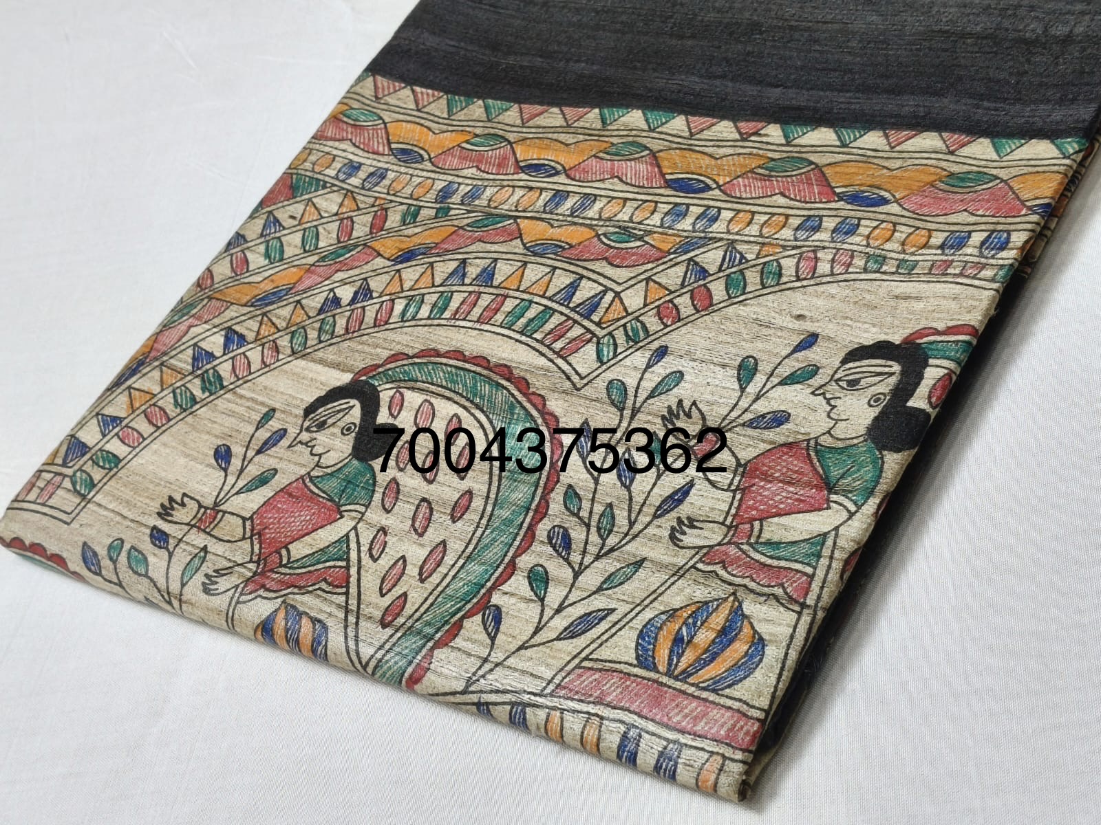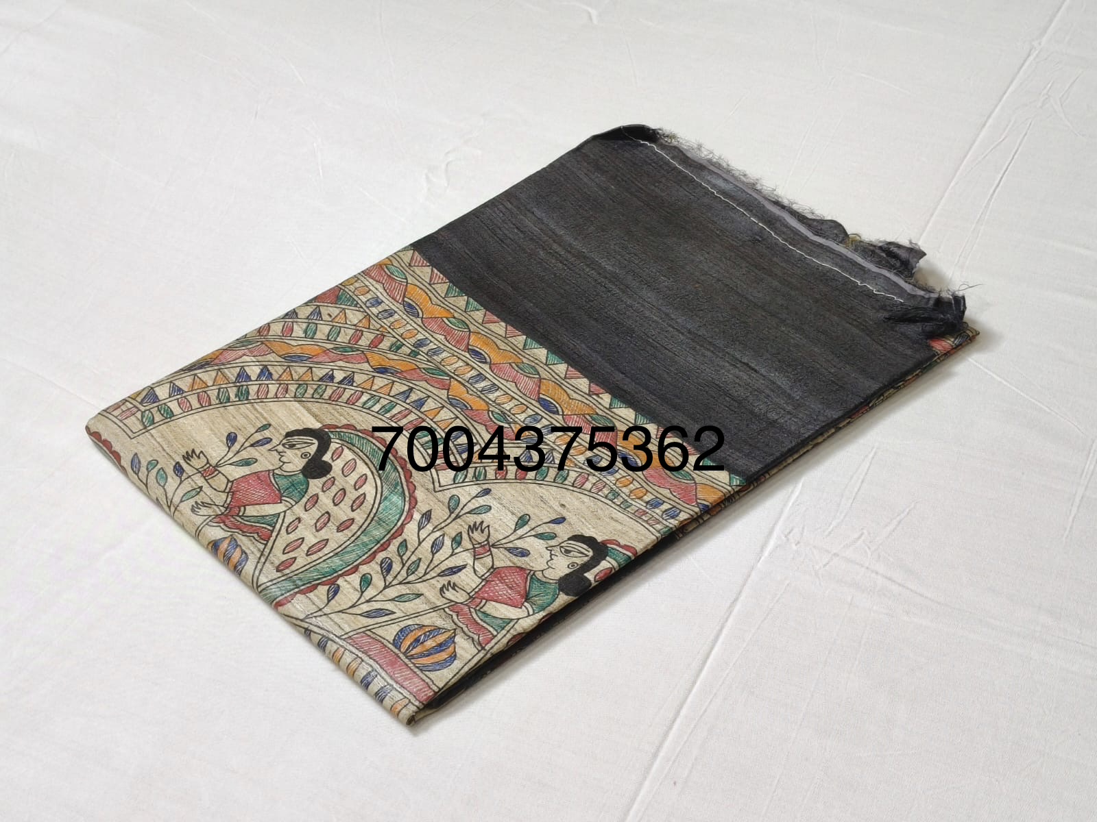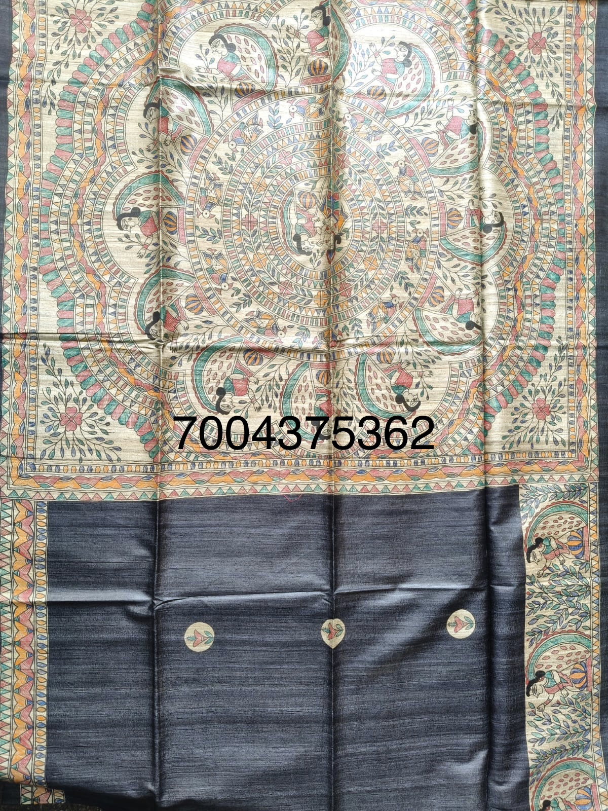 Madhubani Hand Painted Ghicha Tussar Silk Saree