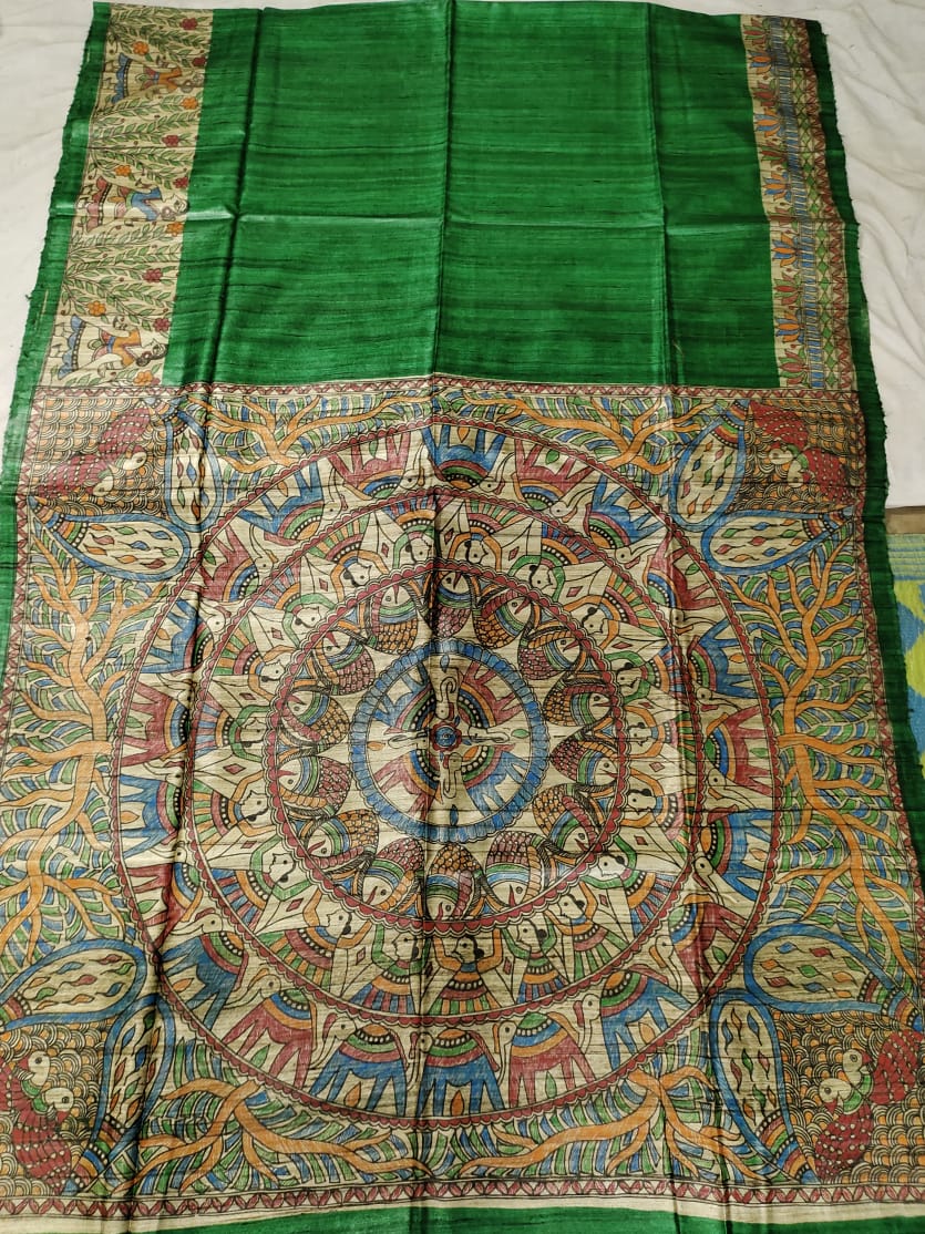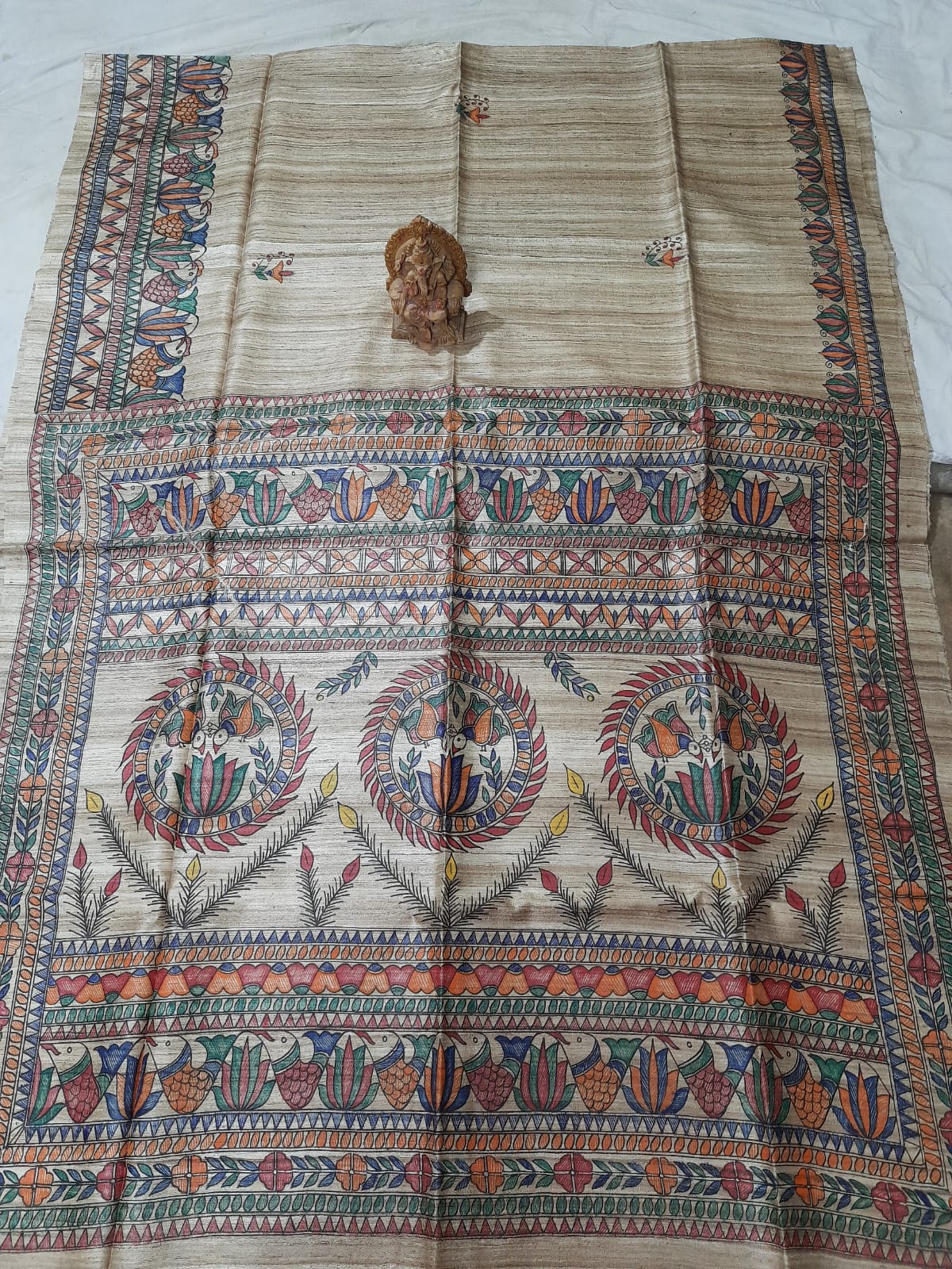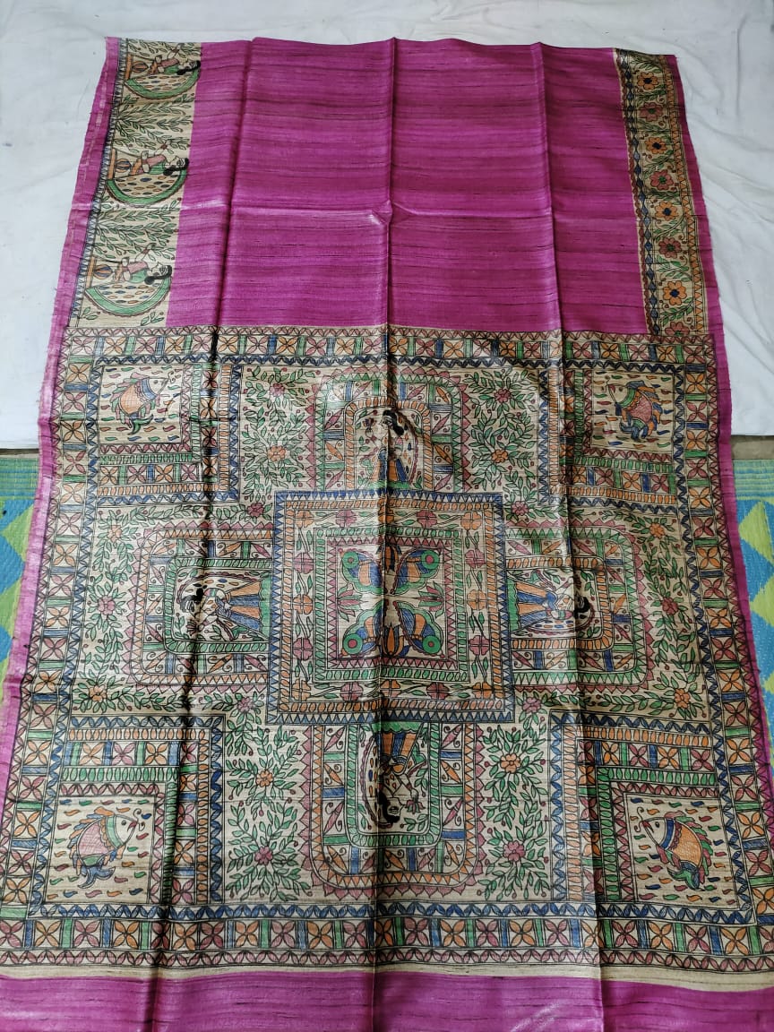 Madhubani Hand Painted Ghicha Tussar Silk Saree
