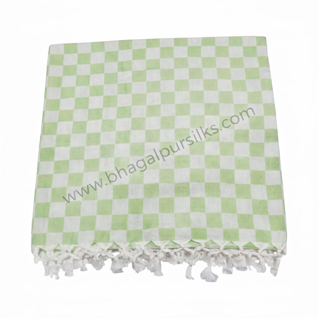 Bhagalpuri Cotton Chadar Checkered Parrot Green-52*96 in