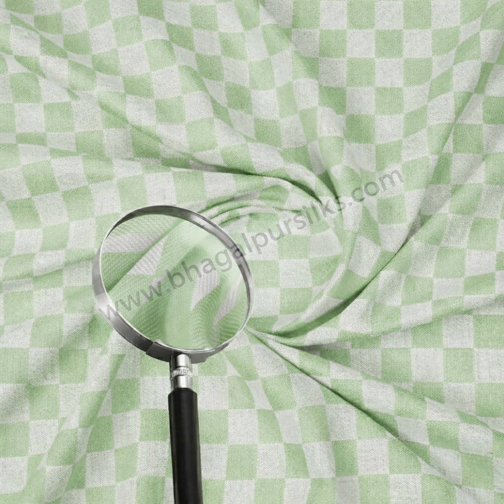 - Design : Features a vibrant Parrot Green colour with a classic checkered pattern. . The texture often shows the subtle “roughness” of traditional Khadi weaving, which signifies its authentic loom origin.