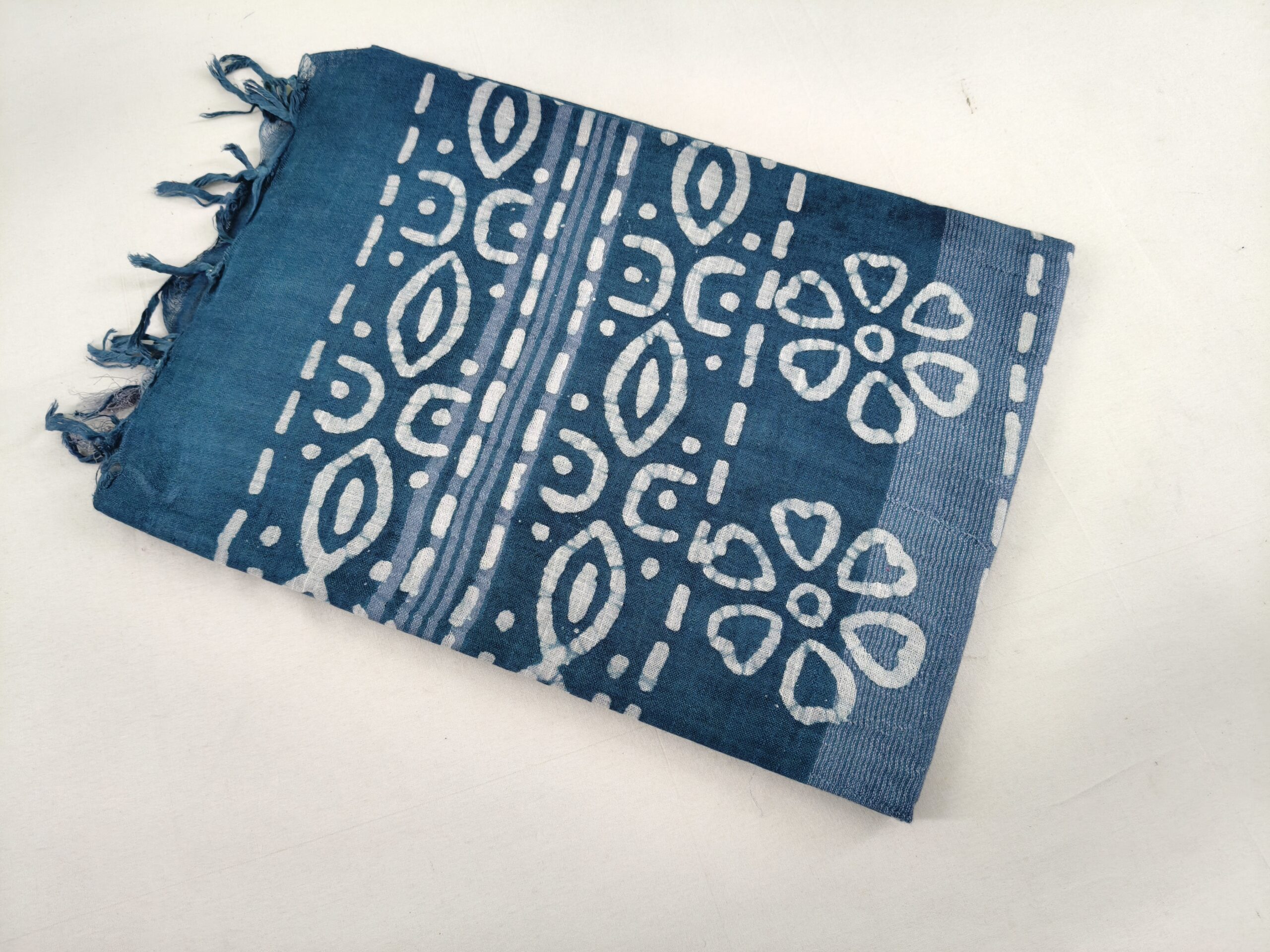 Pure Cotton Hand Block Batik Print Saree With Blouse Pcs-Navy Blue