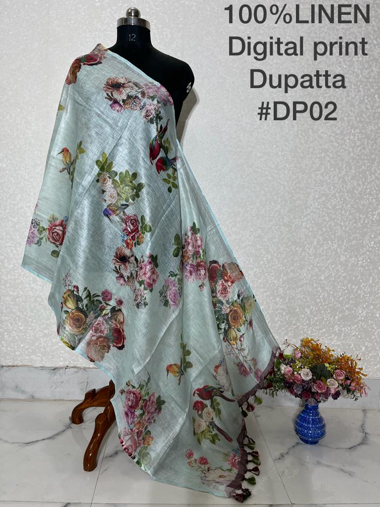 Pure Handloom Linen Digital Print Dupatta