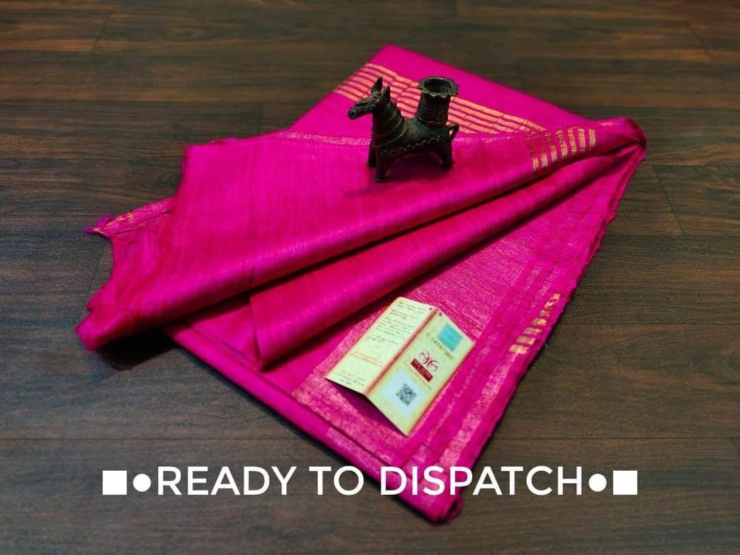 Pure Silk Tussar Ghicha Saree with Woven Zari Border with blouse piece.