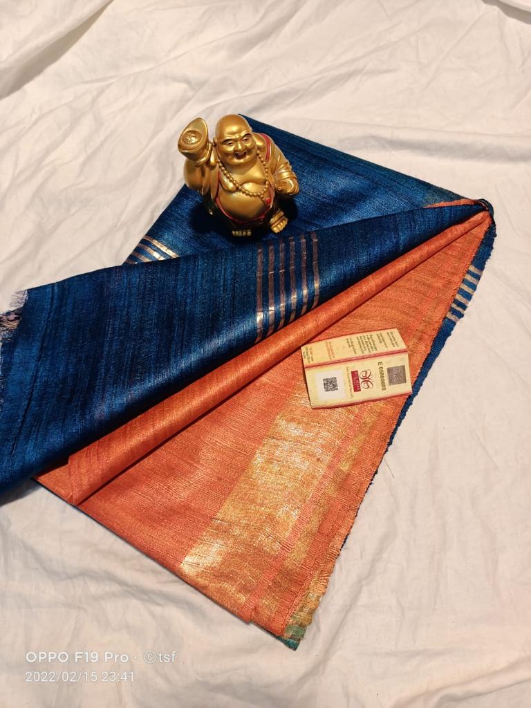 Pure Silk Tussar Ghicha Saree with Woven Zari Border with blouse piece.
