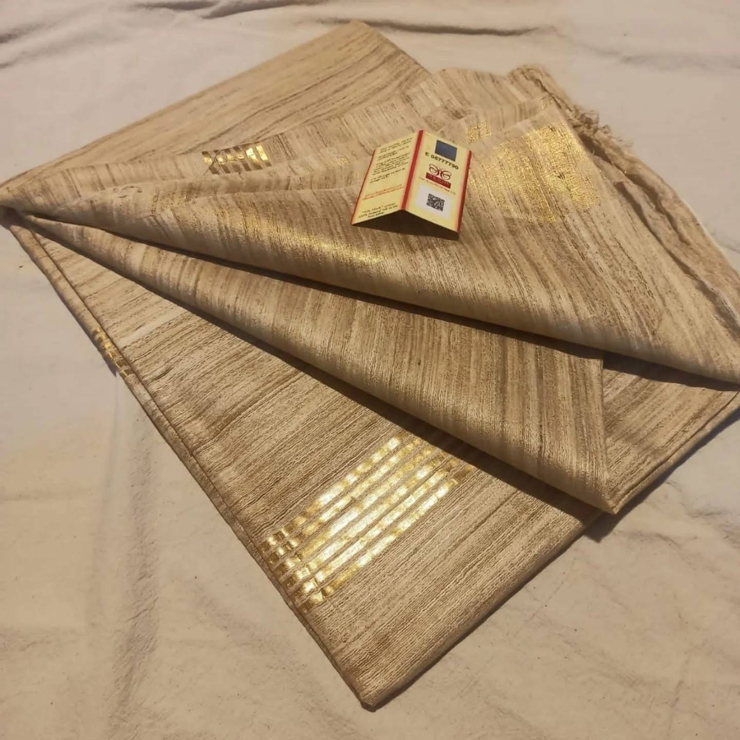 Pure Silk Tussar Ghicha Saree with Woven Zari Border with blouse piece.