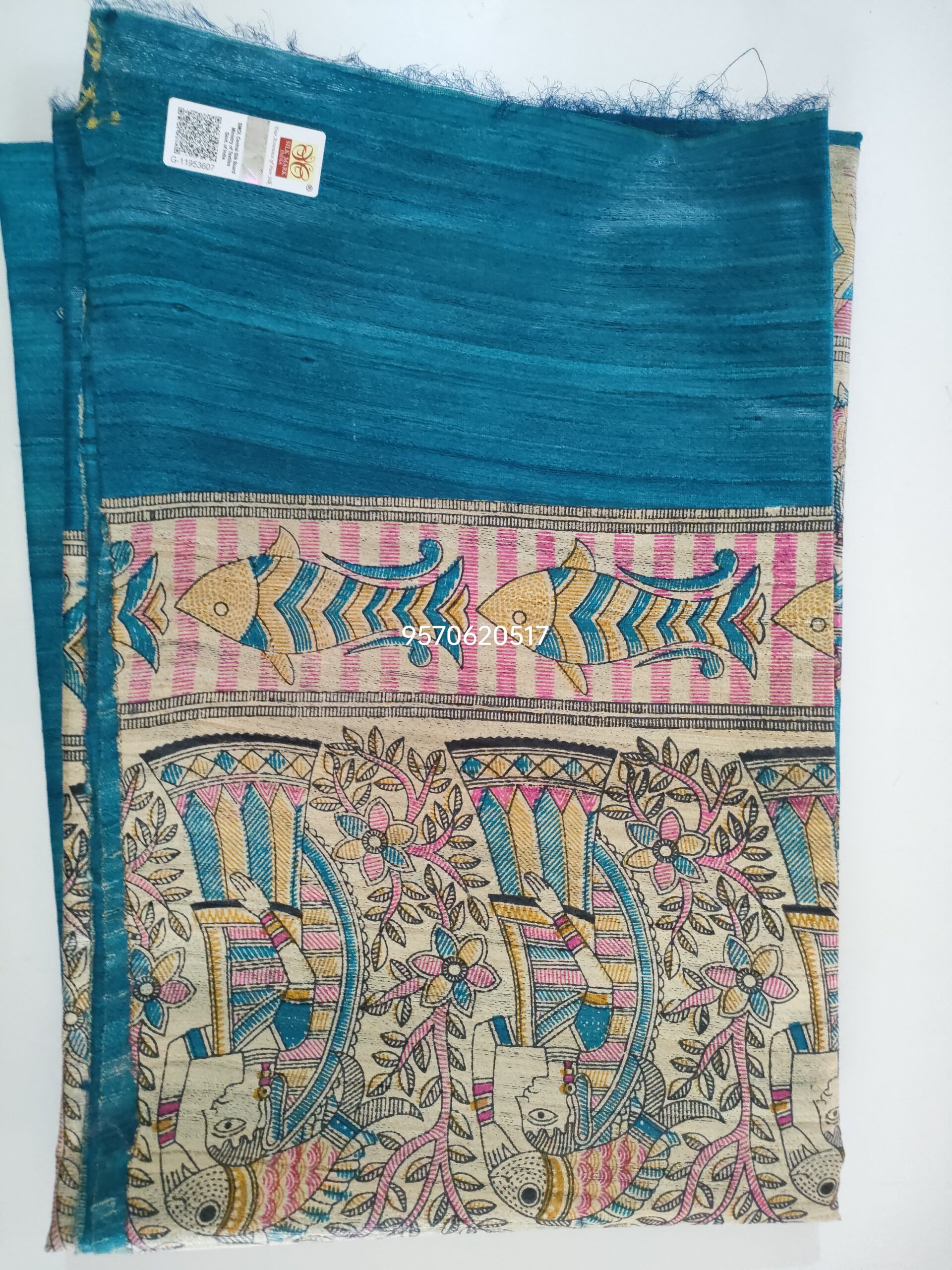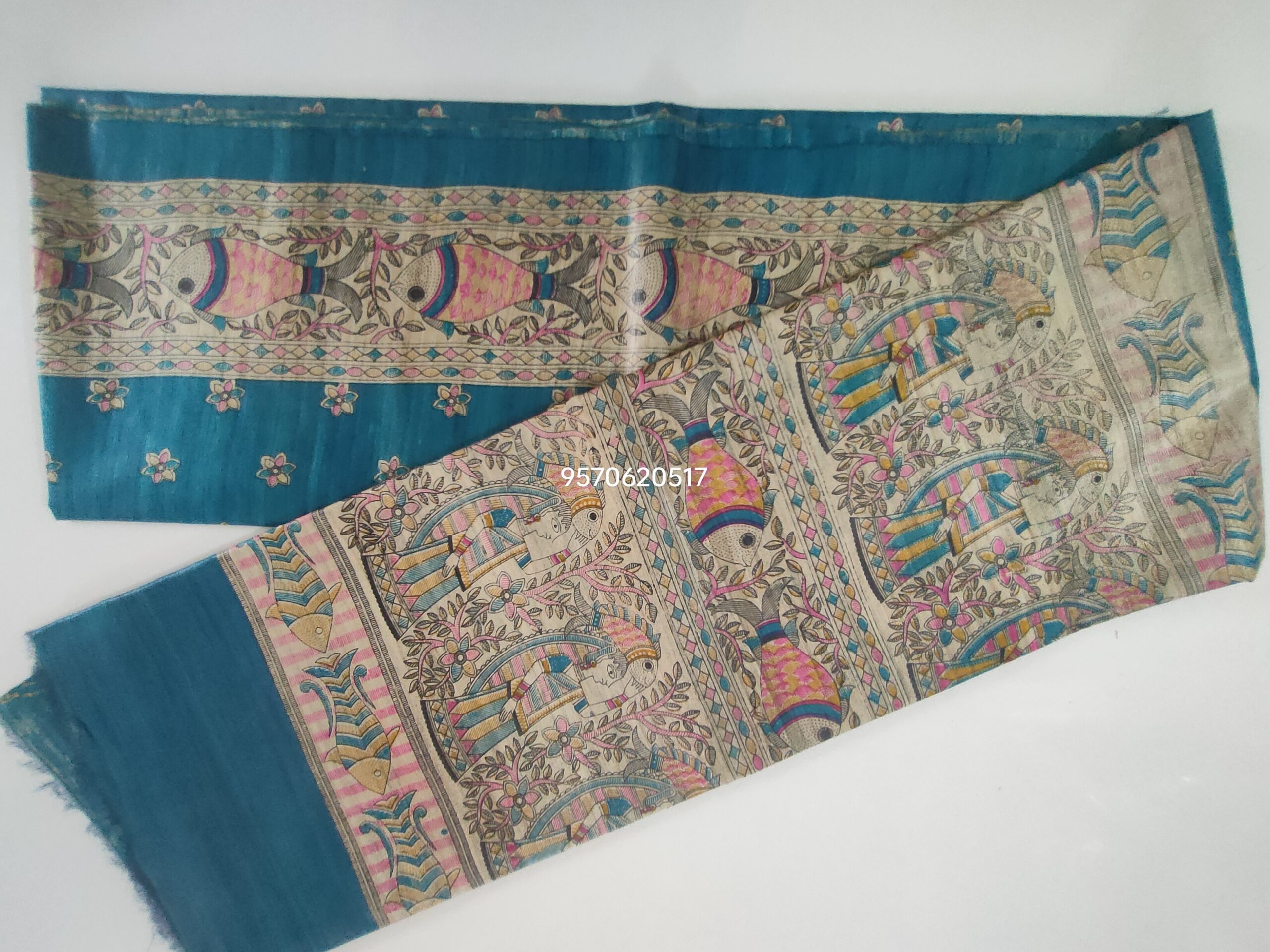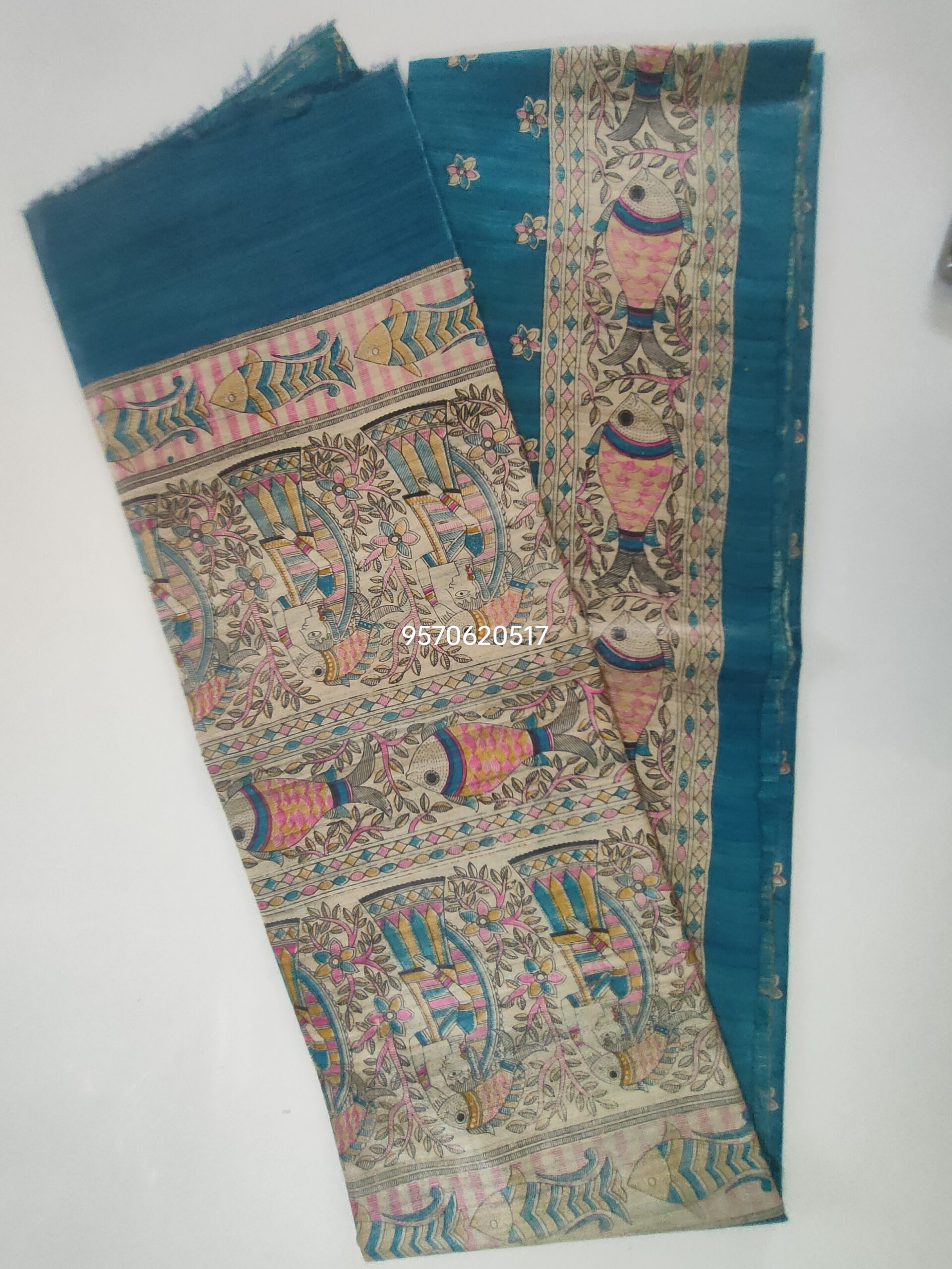Screen Printed Pure Tussar Ghicha Silk Sari with blouse piece. Unique design on tussar silk.