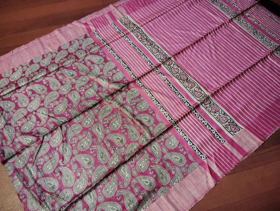 Madhubani hand painted Pure Tussar Silk Sari with blouse piece. Unique design Madhubani Sari.Saree with blouse piece. Madhubani design sari on pure tussar silk.