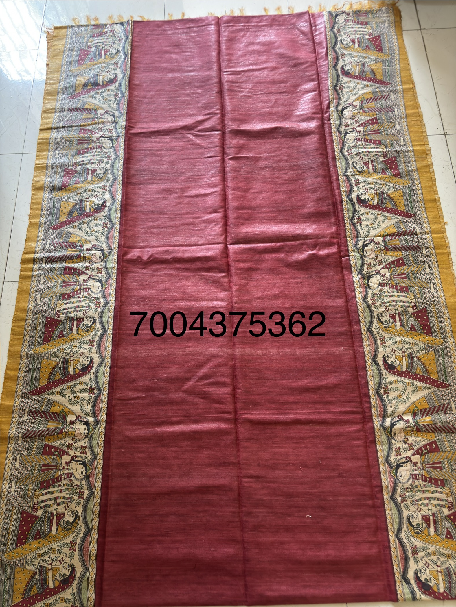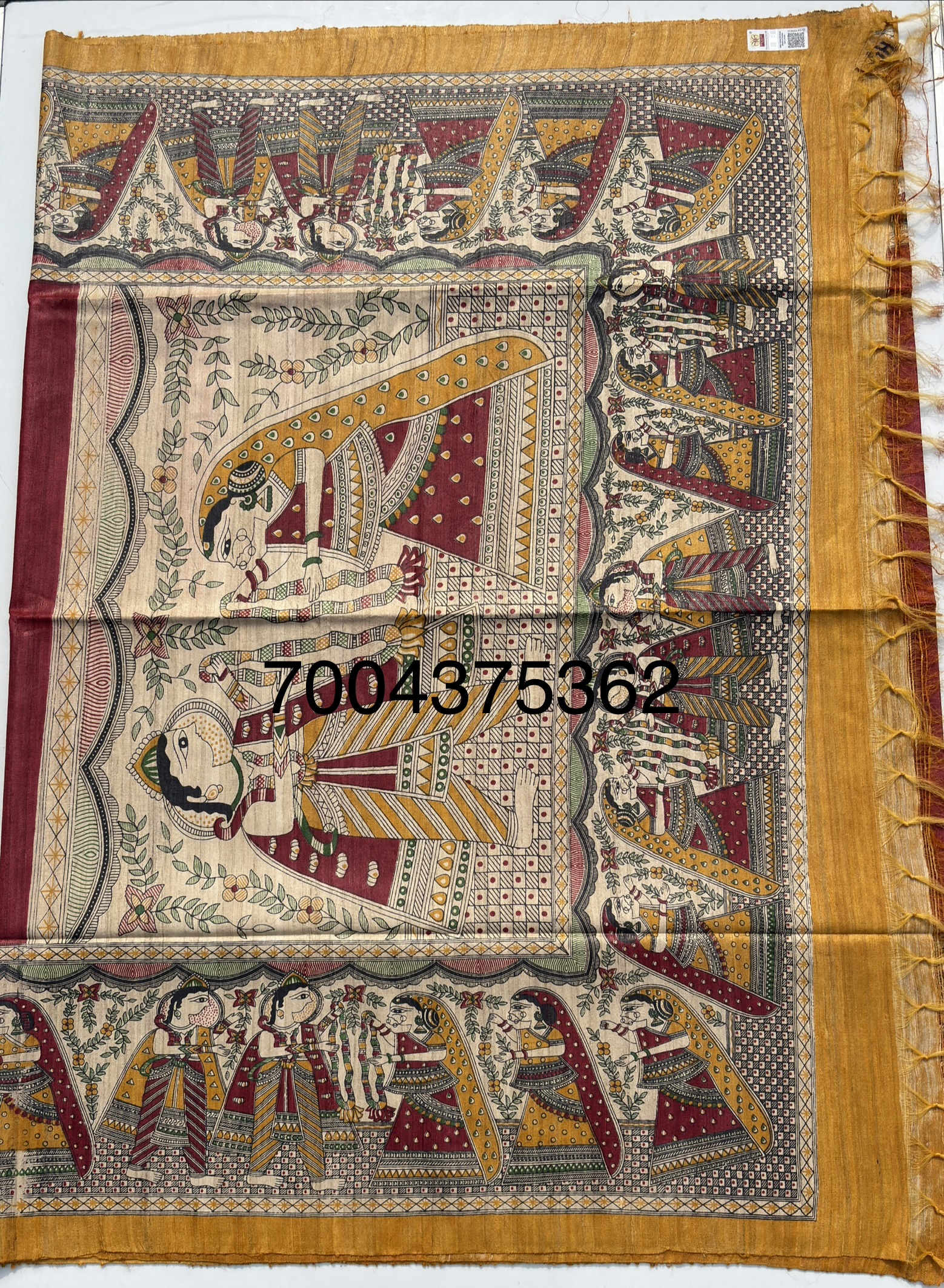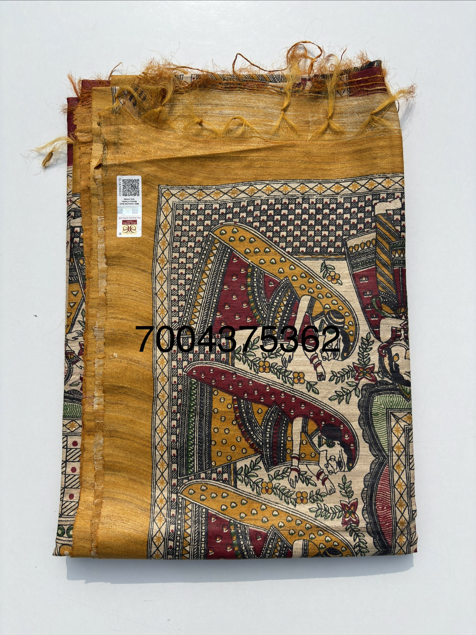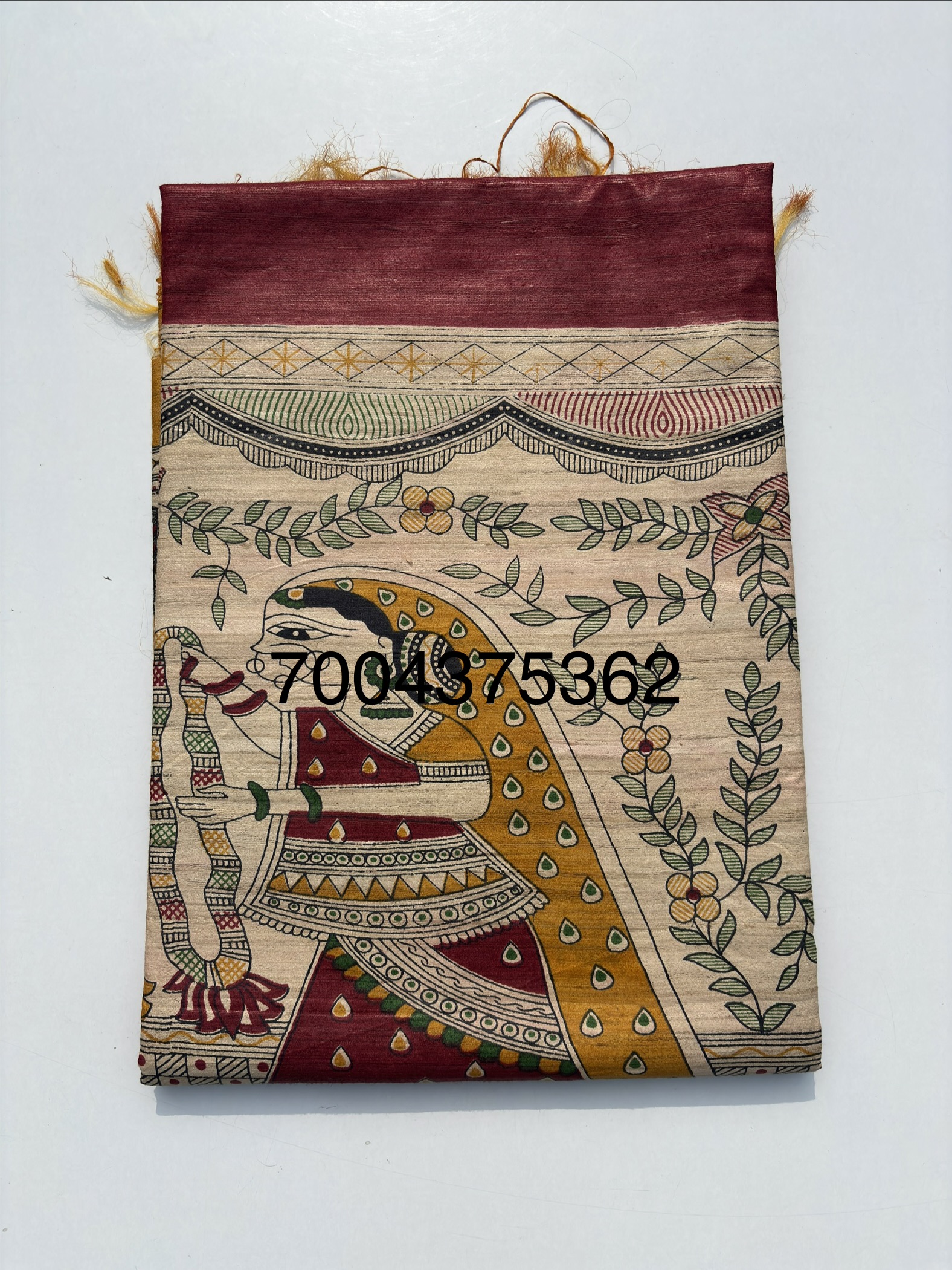 Madhubani hand painted Pure Tussar Silk Sari with blouse piece. Unique design Madhubani Sari.Saree with blouse piece. Madhubani design sari on pure tussar silk.