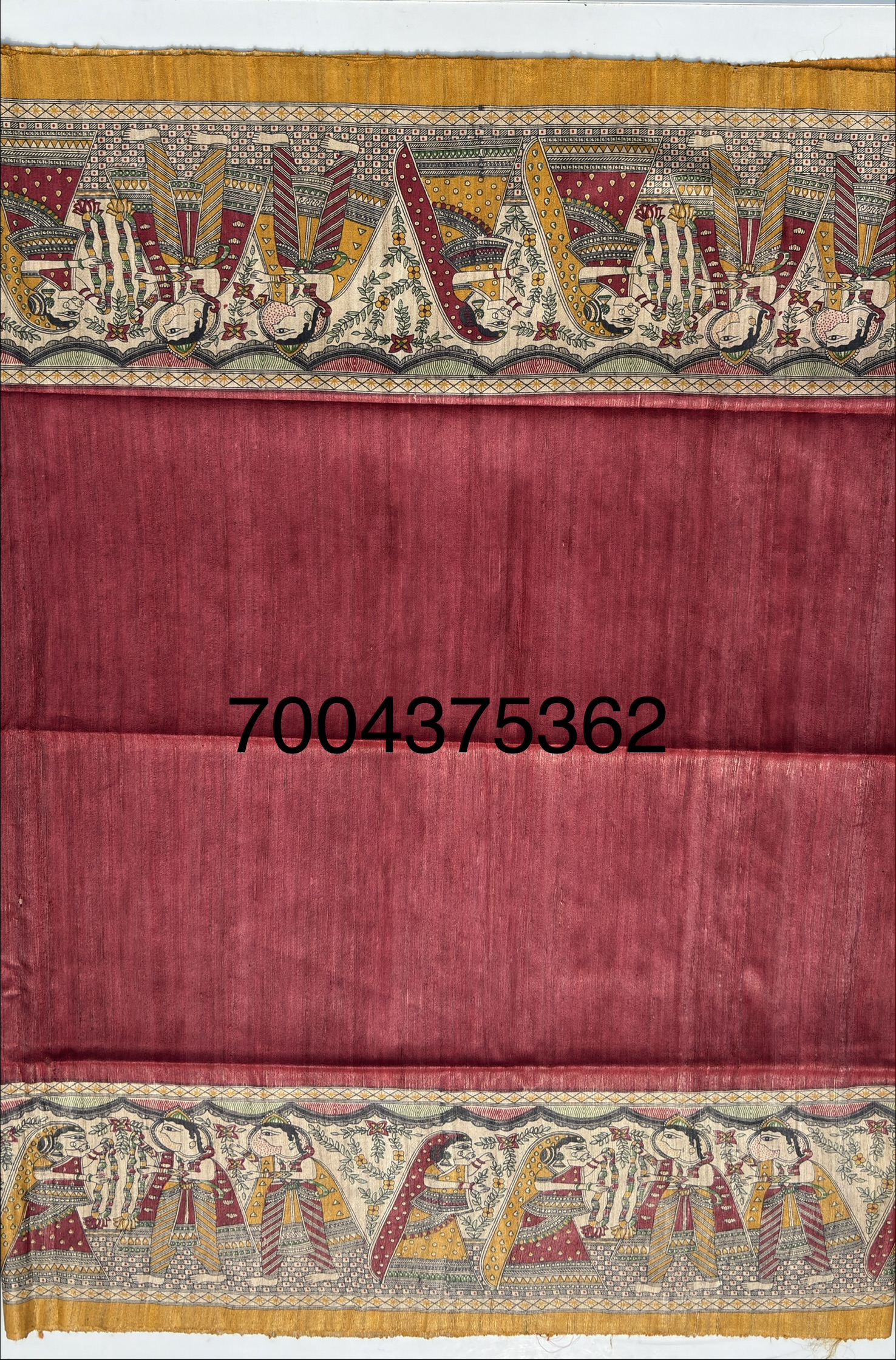 This madhubani hand painted silk saree featuring art of dancing will revive the magic of madhubani paintings which gives us the glimpses of our rich traditional values and culture. There is no alternatives to saree during celebrations and occasions such as wedding, sacred ceremonies and various other parties.