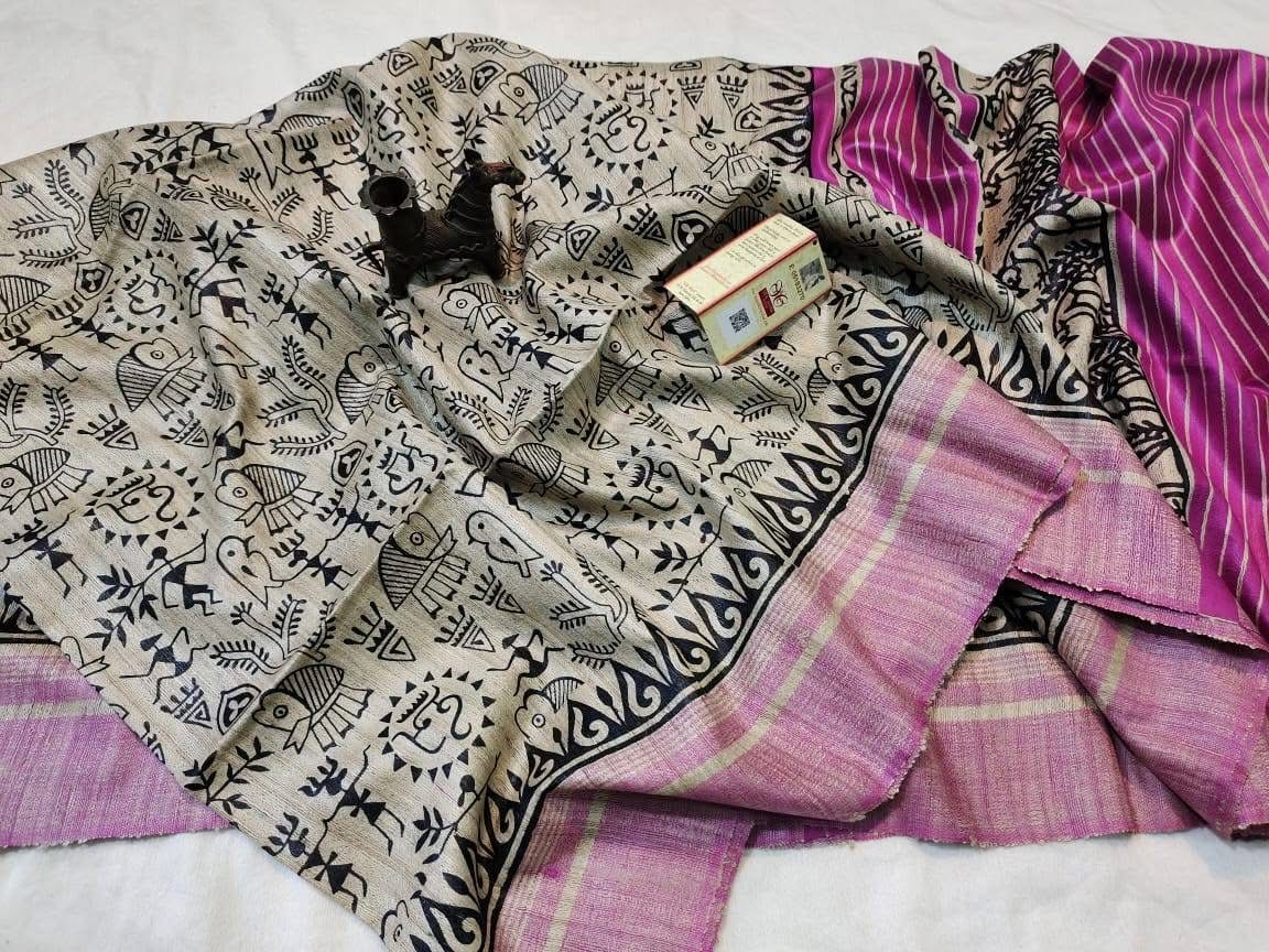 Pure Silk Tussar Ghicha Screen Printed Saree