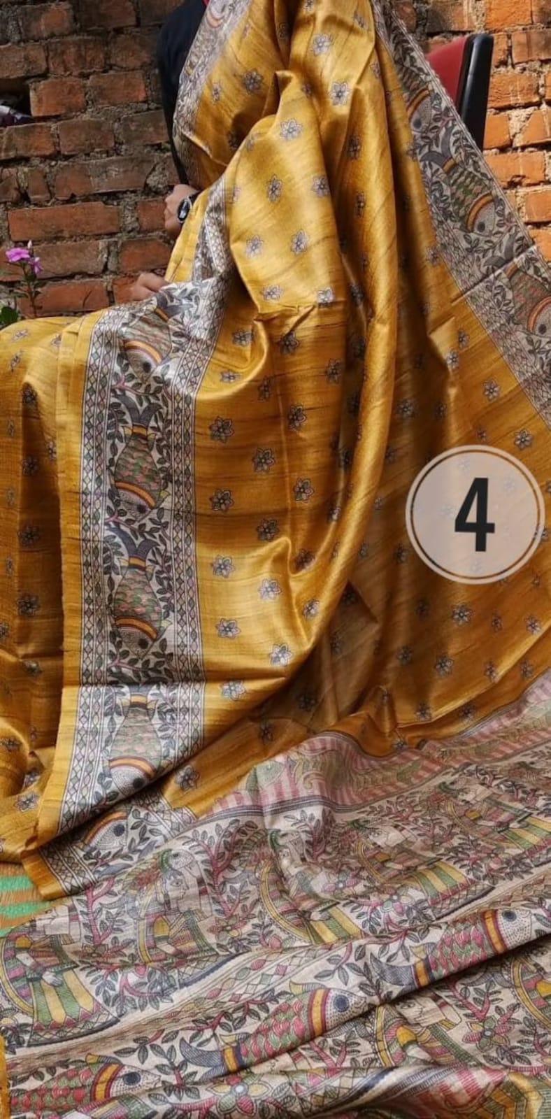 Madhubani hand painted Pure Tussar Silk Sari with blouse piece. Unique design Madhubani Sari.Saree with blouse piece. Madhubani design sari on pure tussar silk.