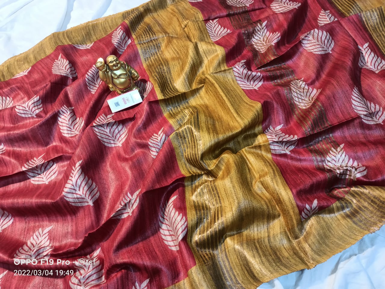 Pure Silk Tussar Ghicha Screen Printed Saree